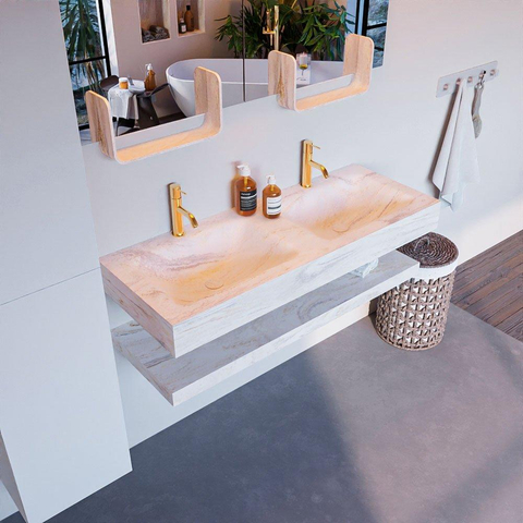 MONDIAZ ALAN - DLUX Badkamermeubelset - 120cm - planchet - Ostra - vrijhangende wastafel - 2 wasbakken - 2 kraangaten - Ostra