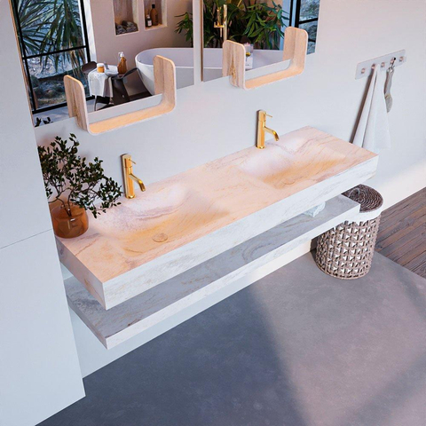 MONDIAZ ALAN - DLUX Badkamermeubelset - 150cm - planchet - Ostra - vrijhangende wastafel - 2 wasbakken - 2 kraangaten - Ostra