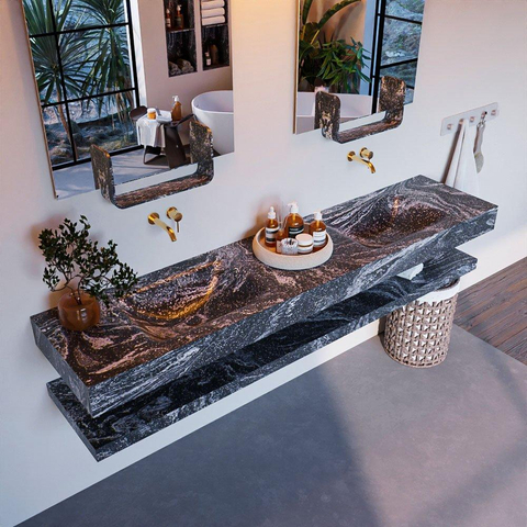 MONDIAZ ALAN - DLUX Badkamermeubelset - 200cm - planchet - Lava - vrijhangende wastafel - 2 wasbakken - 0 kraangaten - Lava