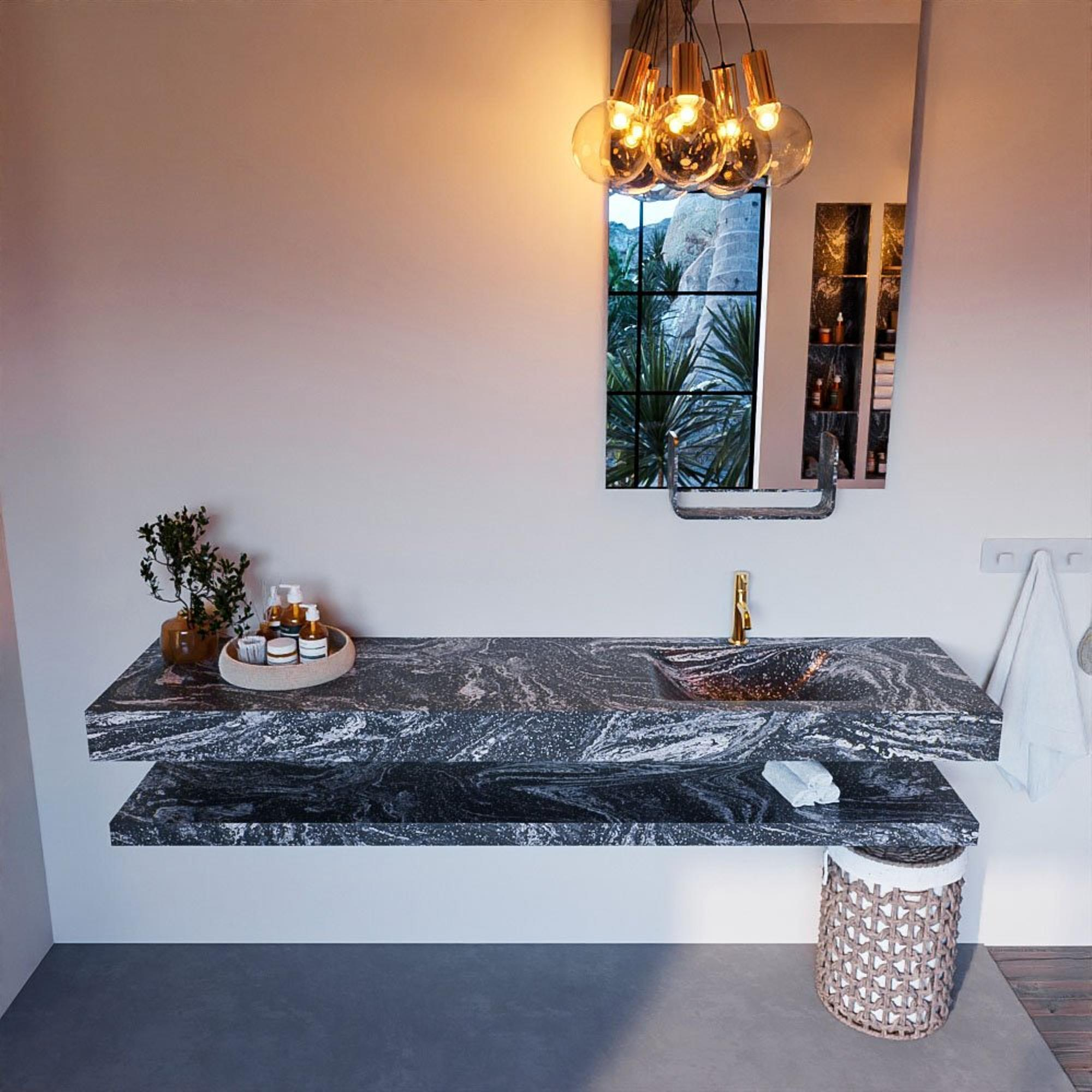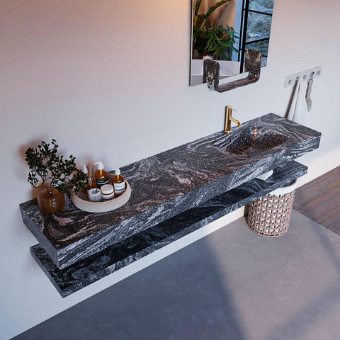 MONDIAZ ALAN - DLUX Badkamermeubelset - 200cm - planchet - Lava - vrijhangende wastafel - wasbak rechts - 1 kraangat - Lava