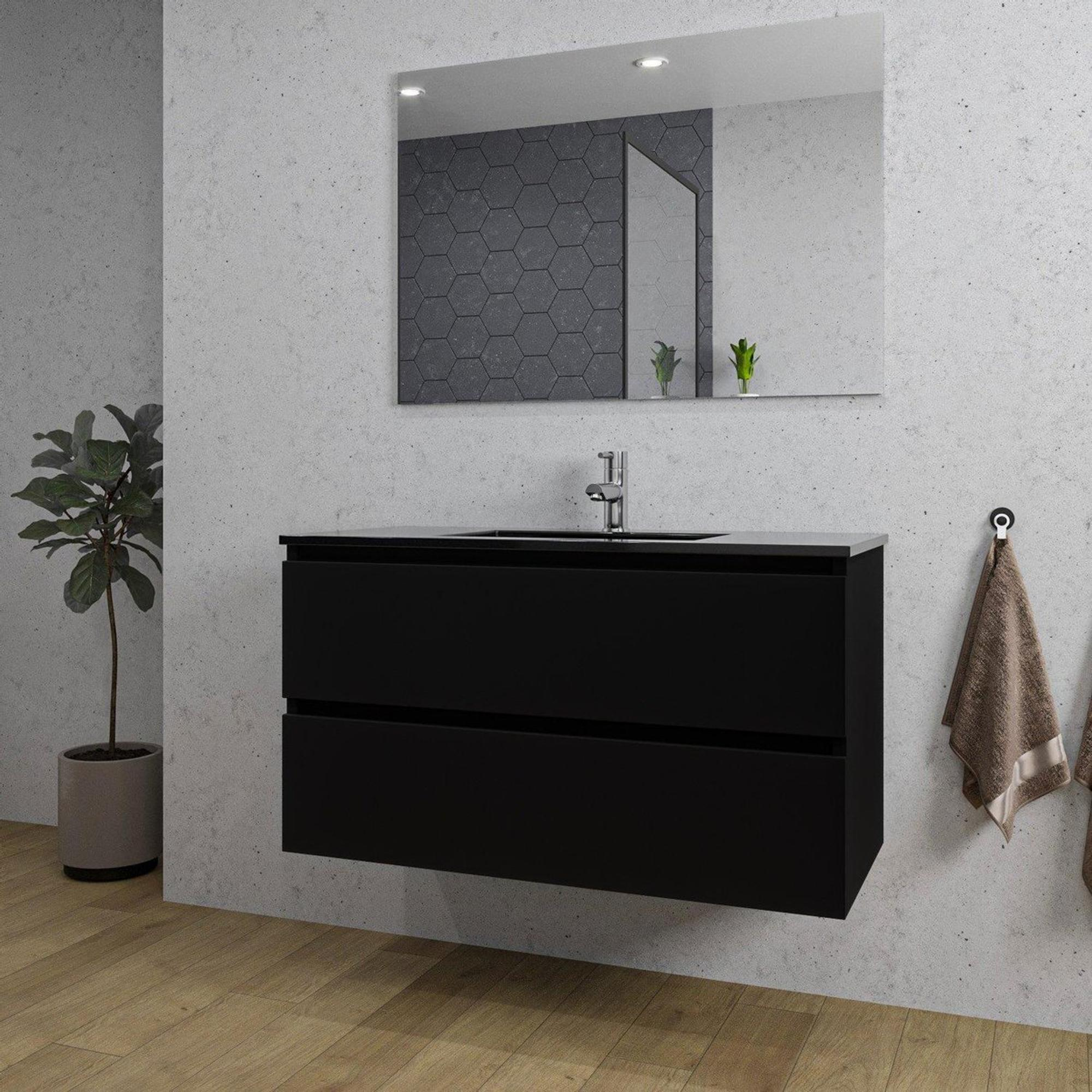 Adema Chaci Badkamermeubelset - 100x46x57cm - 1 keramische wasbak zwart - 1 kraangat - 2 lades - mat zwart