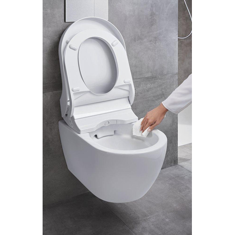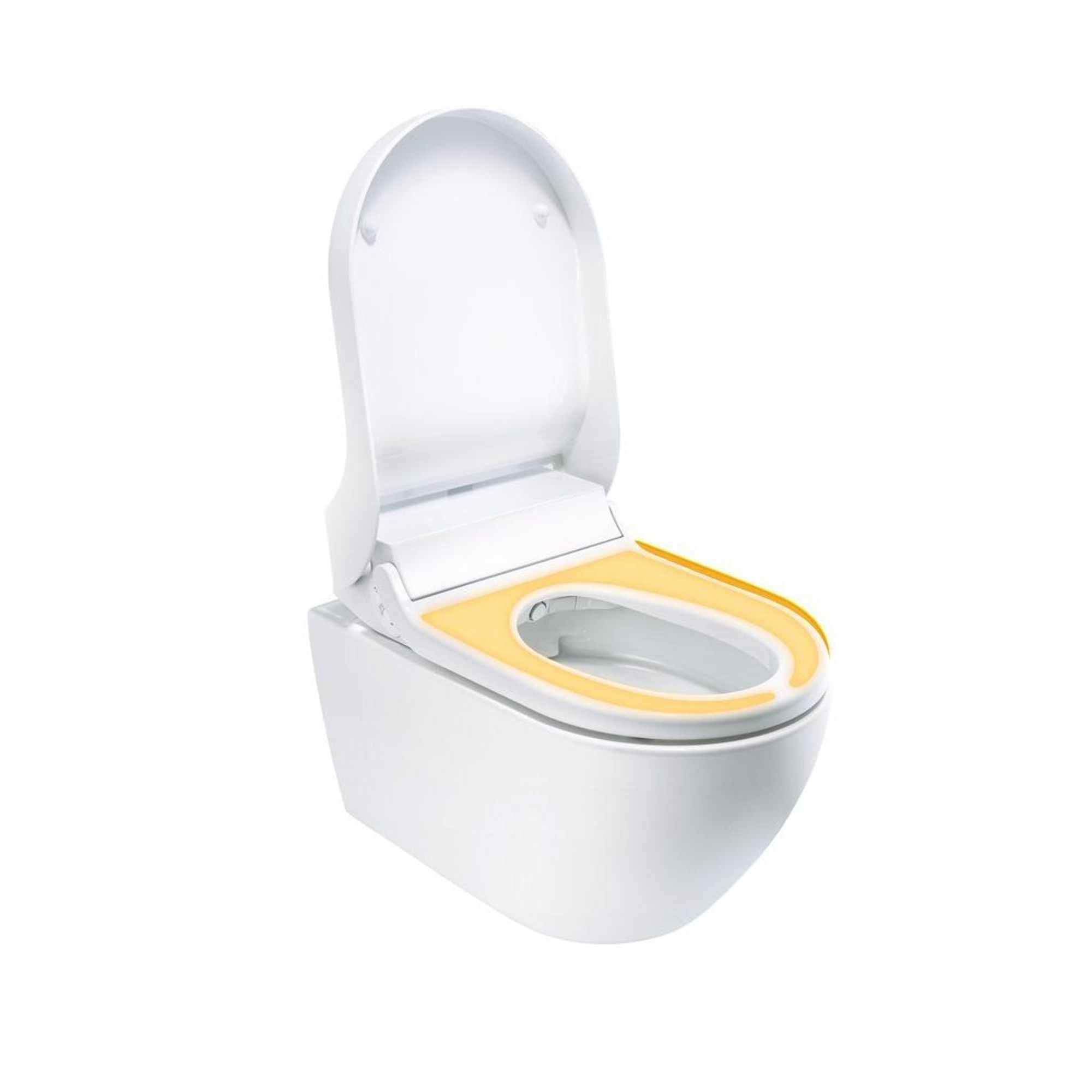 De ergonomisch wc-zitting van hoge kwaliteit duroplast is voorzien van een geïntegreerde verwarming, zodat u er altijd heerlijk bij zit. Dankzij de naderingssensor wordt de wc-zitting pas verwarmd als u dichtbij komt. Zo wordt er niet onnodig stroom verbruikt.