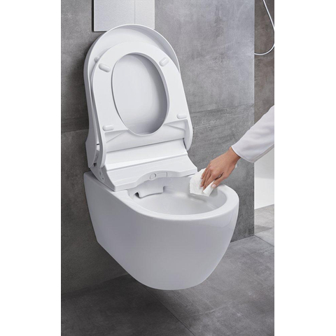 Het diepspoel wc-keramiek met vuilafstotend oppervlak voorkomt ophoping van vuil en zorgt ervoor dat het keramiek grondig schoon blijft. De douchearm en douchekop worden altijd automatisch met schoon water doorgespoeld voor en na ieder gebruik. En een speciaal ontkalkingsprogramma beschermt alle watervoerende componenten.
