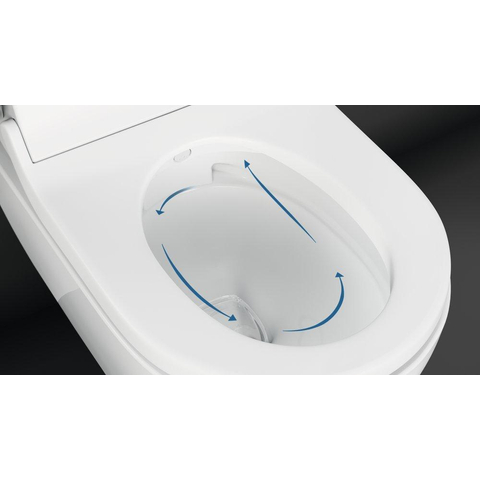 De geurzuivering doet precies wat de naam aangeeft: het laat onaangename geuren verdwijnen. De functie wordt automatisch ingeschakeld zodra u op de douchewc gaat zitten. De lucht wordt onder de spoelrand van de keramiek afgezogen, door een in de installatie geïntegreerde filter gereinigd en vervolgens fris en geurloos weer terug in de ruimte teruggevoerd. De geurzuivering kan tevens via de bijgeleverde afstandsbediening of de smartphone App worden bediend.