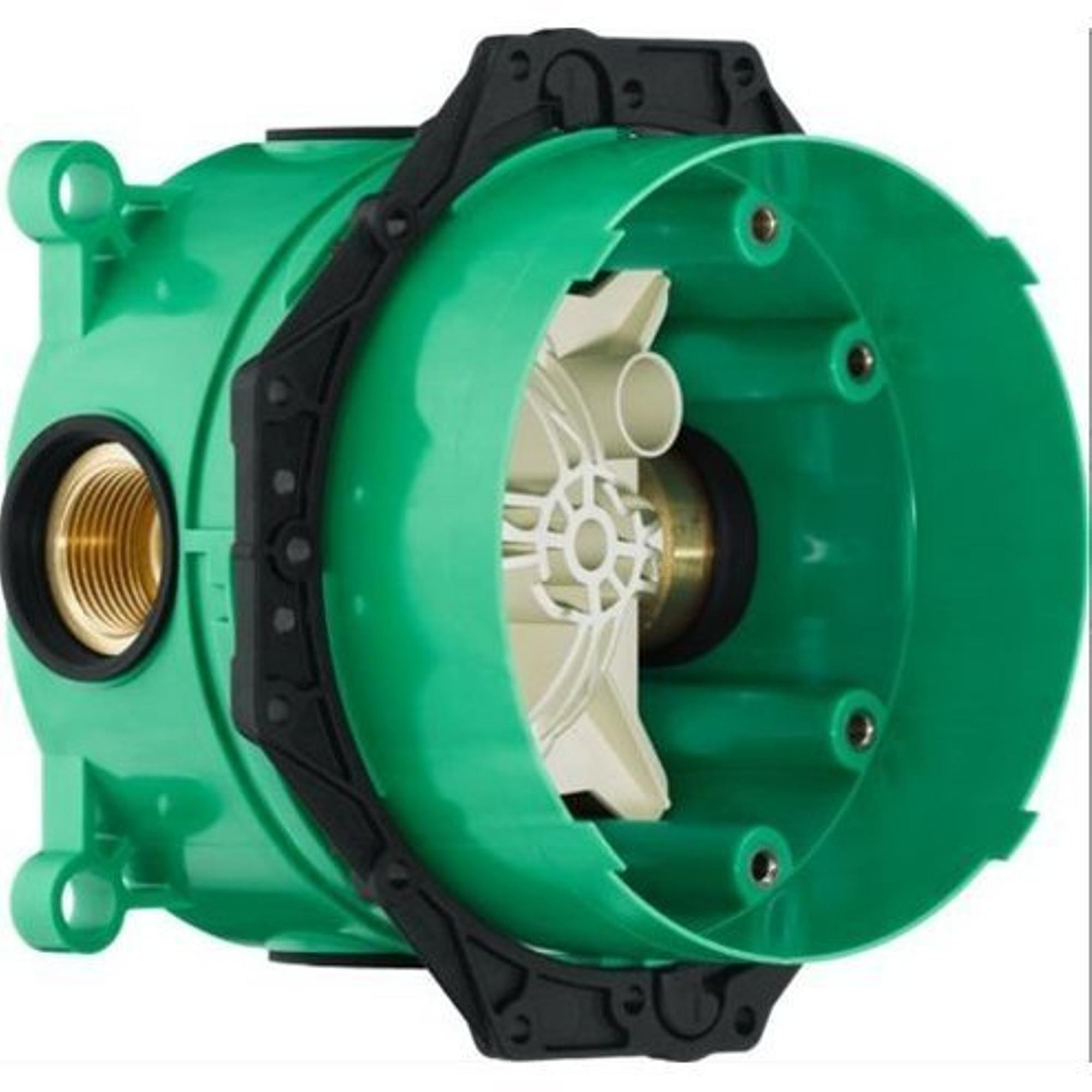 De thermostaat is uitgerust met SafetyStop temperatuurbegrenzing op 40°. Ook is de maximale warmwatertemperatuur vooraf in te stellen. De thermostaat wordt geleverd met de handdouche en Rain Large knoppen. Dankzij de drukknoppen selecteer je beide douchefuncties met slechts één druk op de knop. De waterdoorstroom van de bovenuitgang is 25 l/min, waar de onderuitgang 23 l/min levert.