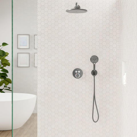 De stijlvolle ShowerSelect S thermostaat met functieselectie is met zijn brushed black chrome afwerking een echte eye-catcher. Deze thermostaat is uitgerust met drukknoppen waarmee je zowel de hoofddouche, als de handdouche in en uit kunt schakelen. Zelfs gelijktijdig gebruik is mogelijk.