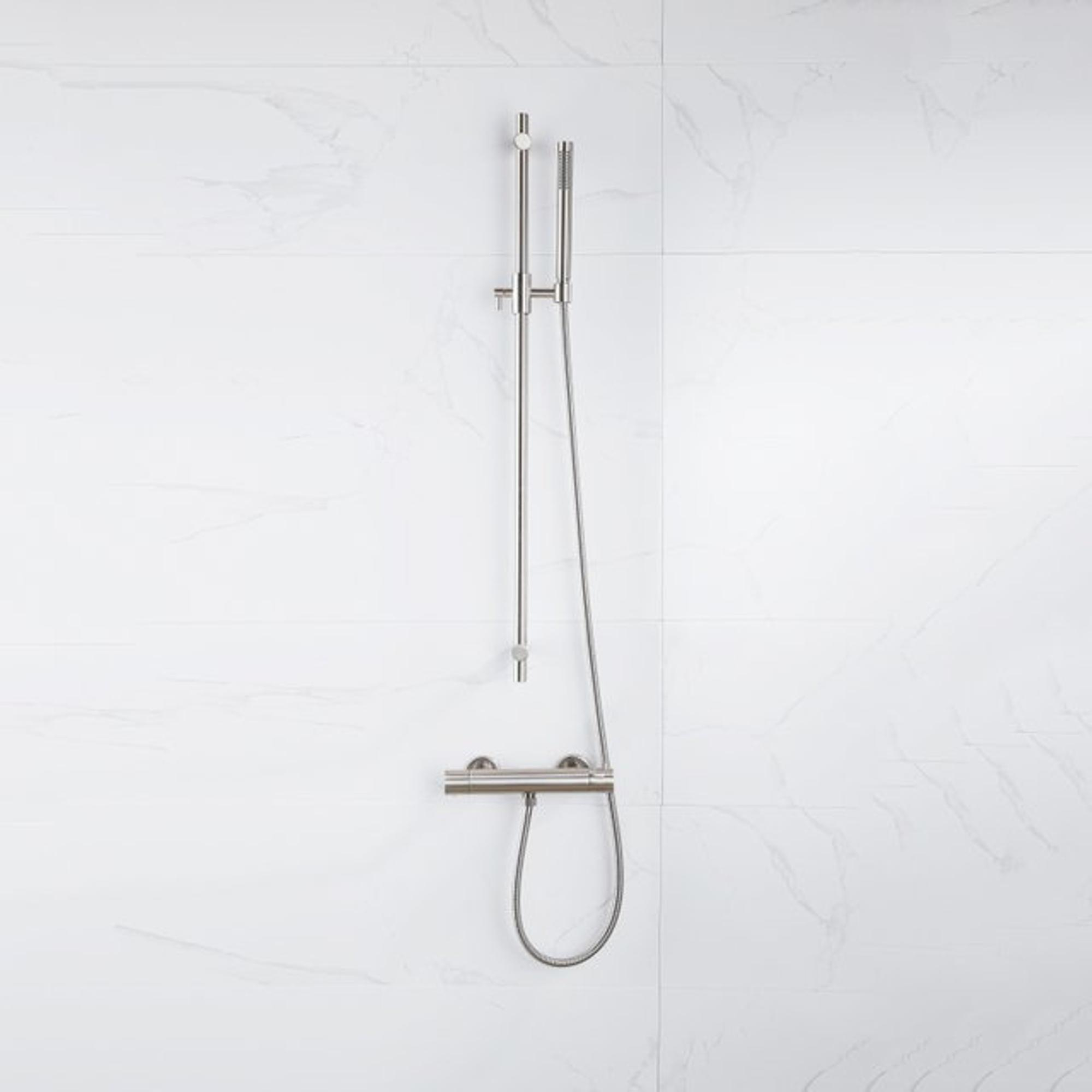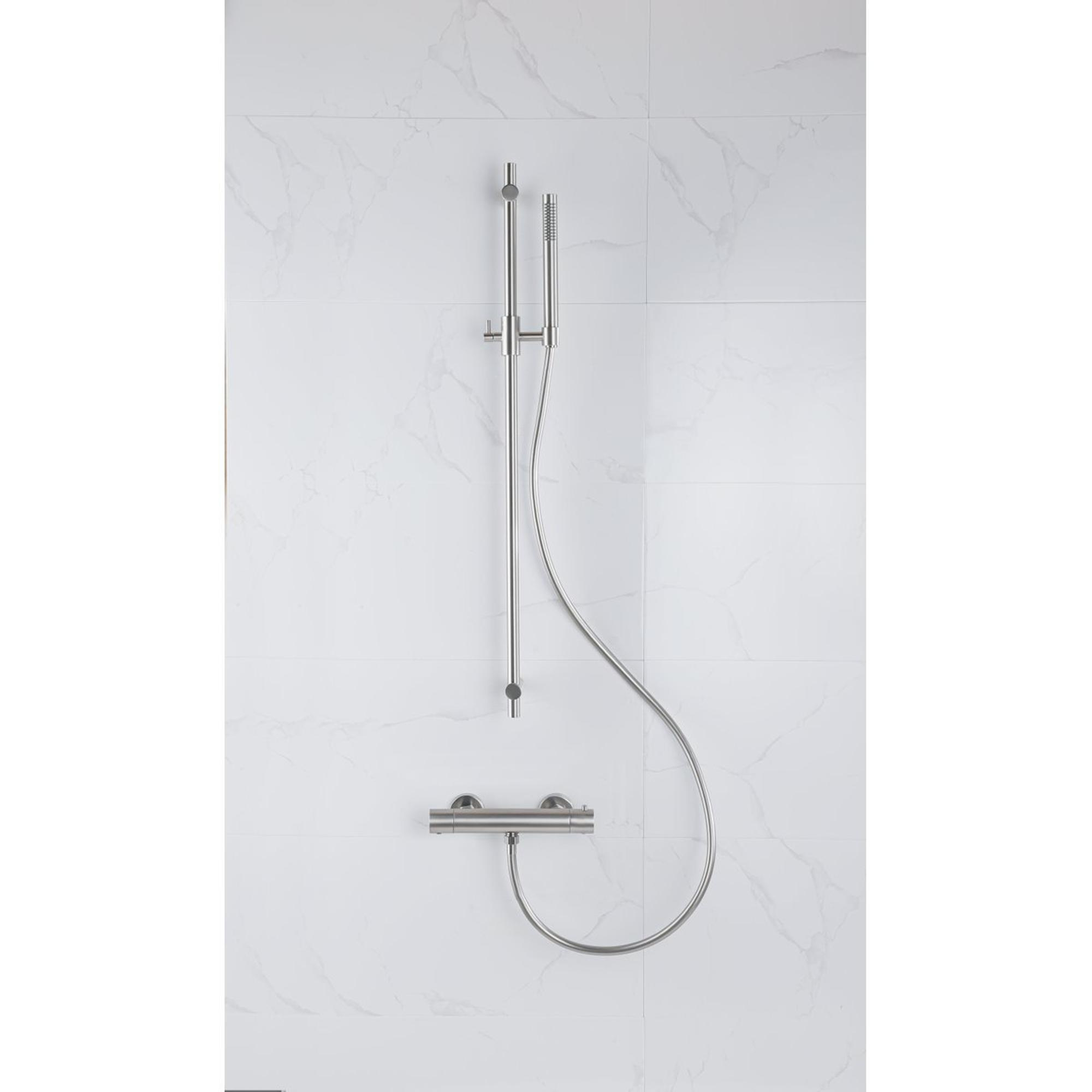 Fortifura Calvi douchekraan met glijstangset met staafhanddouche, gladde doucheslang Geborsteld RVS PVD (RVS)