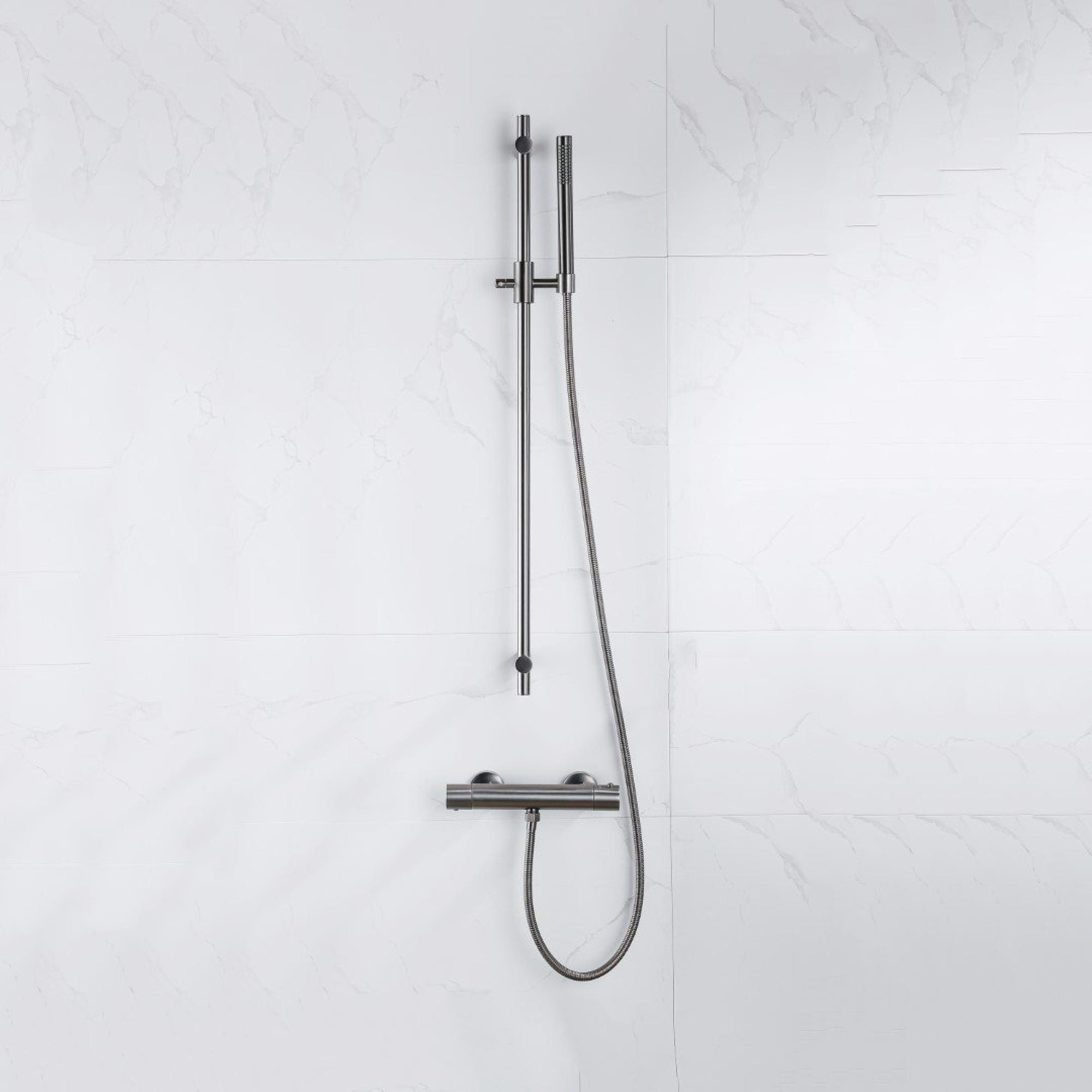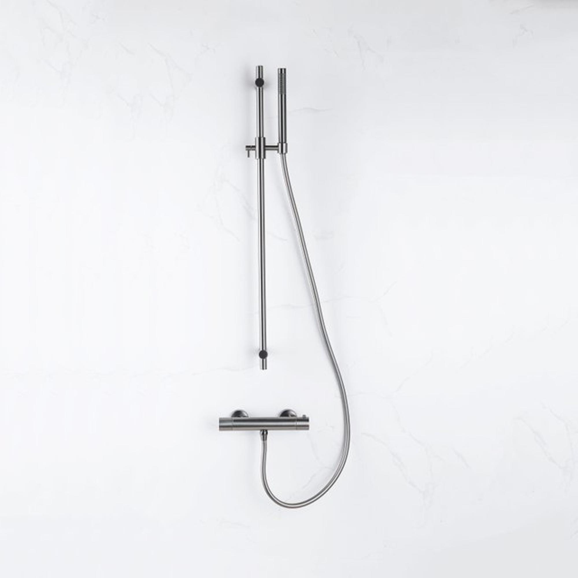 Fortifura Calvi douchekraan met glijstangset met staafhanddouche, metalen doucheslang Geborsteld Gunmetal PVD (antraciet)