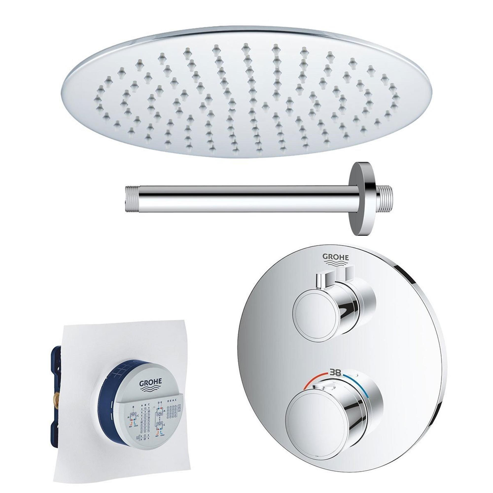 GROHE Grohtherm Regendoucheset Inbouw - hoofddouche 30cm - 1 functie - plafondarm 20cm - chroom