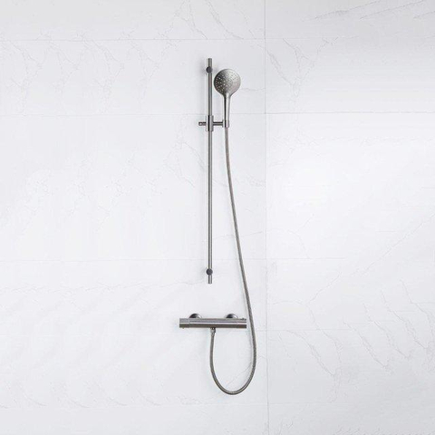 Fortifura Calvi douchekraan met glijstangset met ronde handdouche, gladde doucheslang Geborsteld Gunmetal PVD