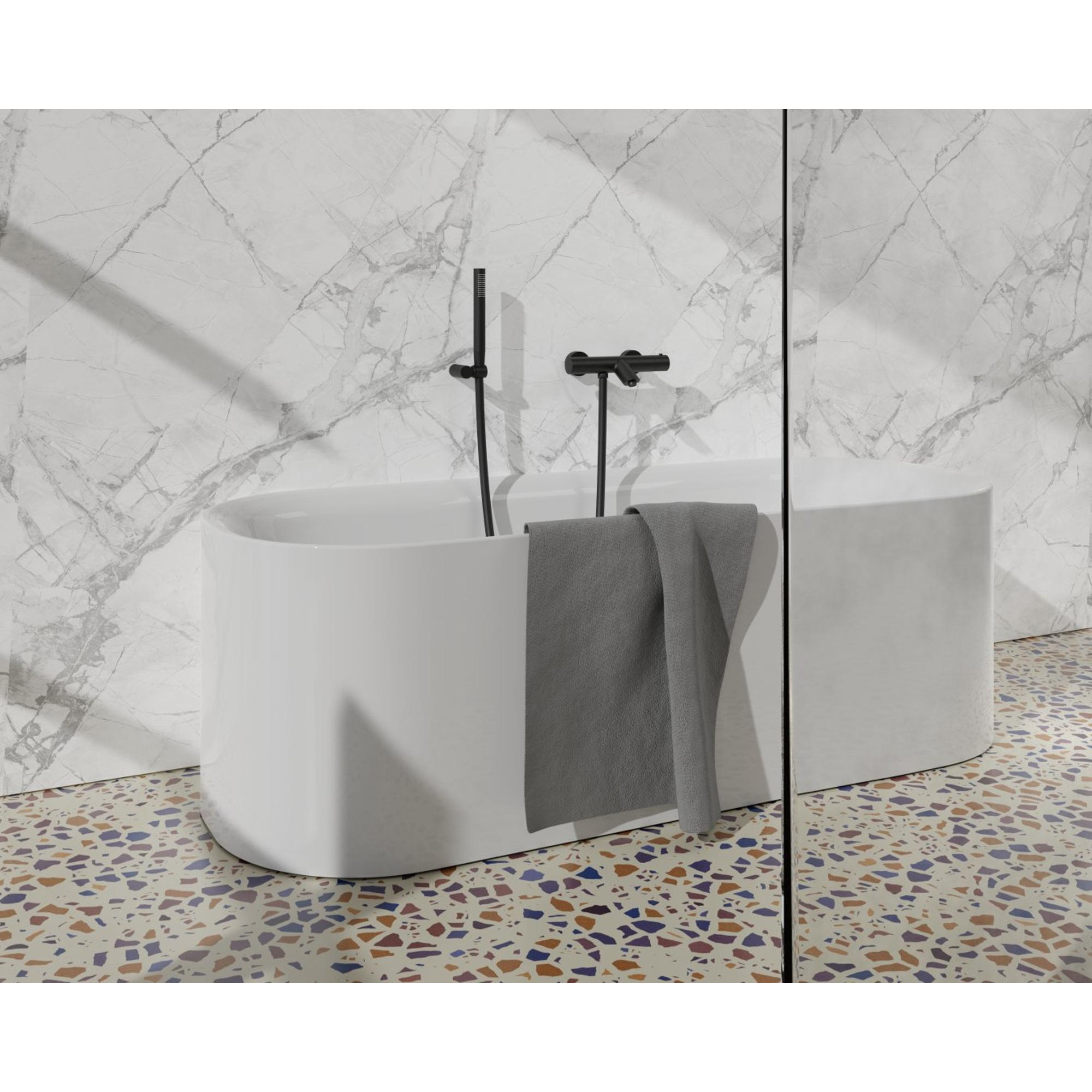 Fortifura Calvi Thermostatische badkraan met staafhanddouche, handdouchehouder en gladde doucheslang mat zwart