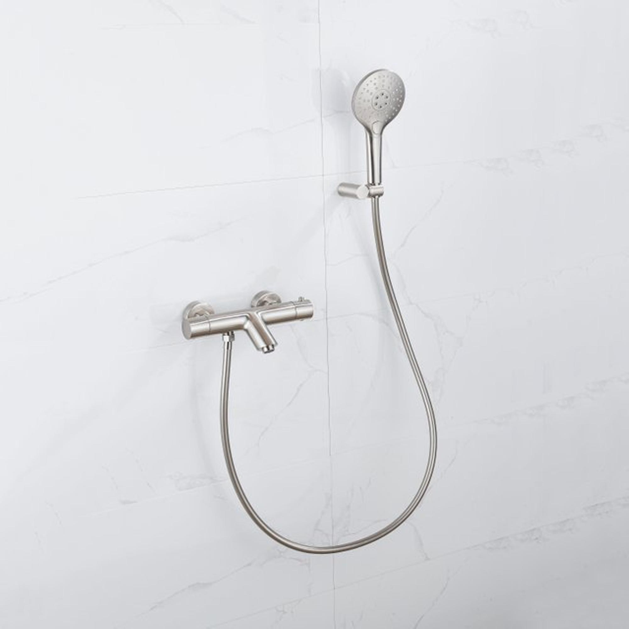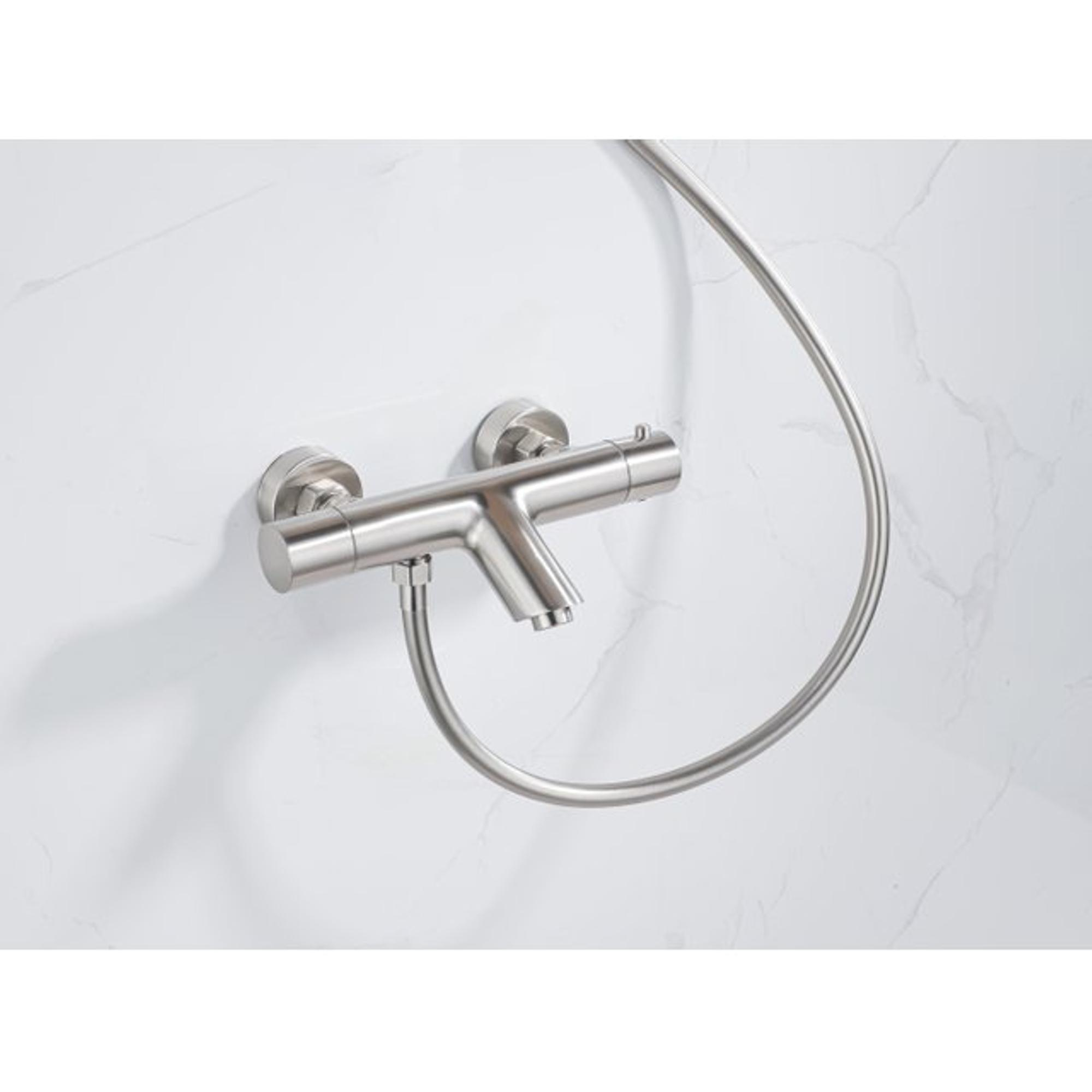 Fortifura Calvi Thermostatische badkraan - ronde handdouche - handdouchehouder - gladde doucheslang - PVD - Geborsteld RVS