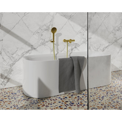 Fortifura Calvi Thermostatische badkraan met ronde handdouche, handdouchehouder en gladde doucheslang Geborsteld Messing PVD (Goud)