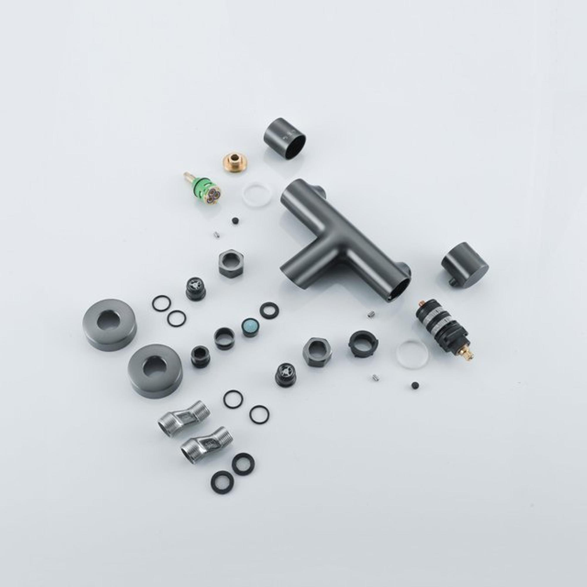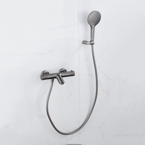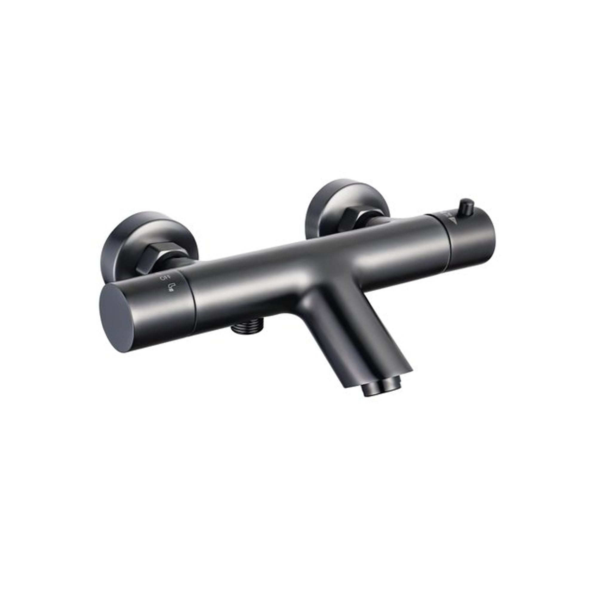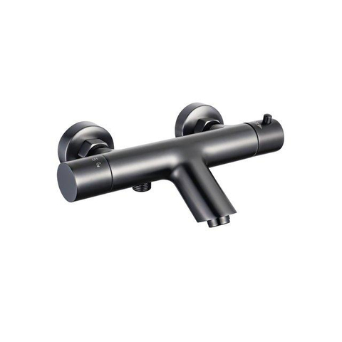 Fortifura Calvi Thermostatische badkraan met ronde handdouche, handdouchehouder en gladde doucheslang Geborsteld Gunmetal PVD