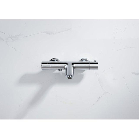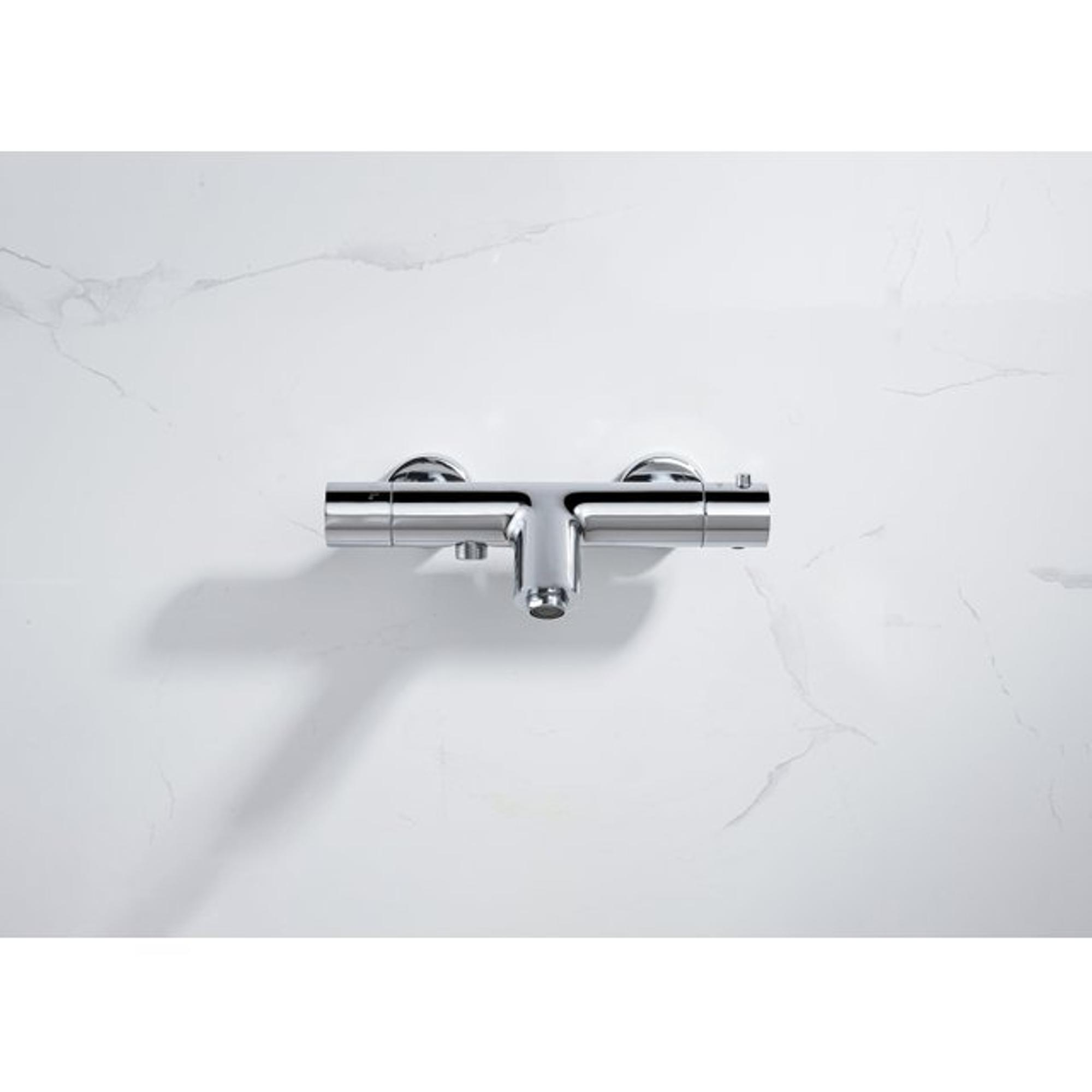 Fortifura Calvi Thermostatische badkraan met ronde handdouche, handdouchehouder en metalen doucheslang chroom