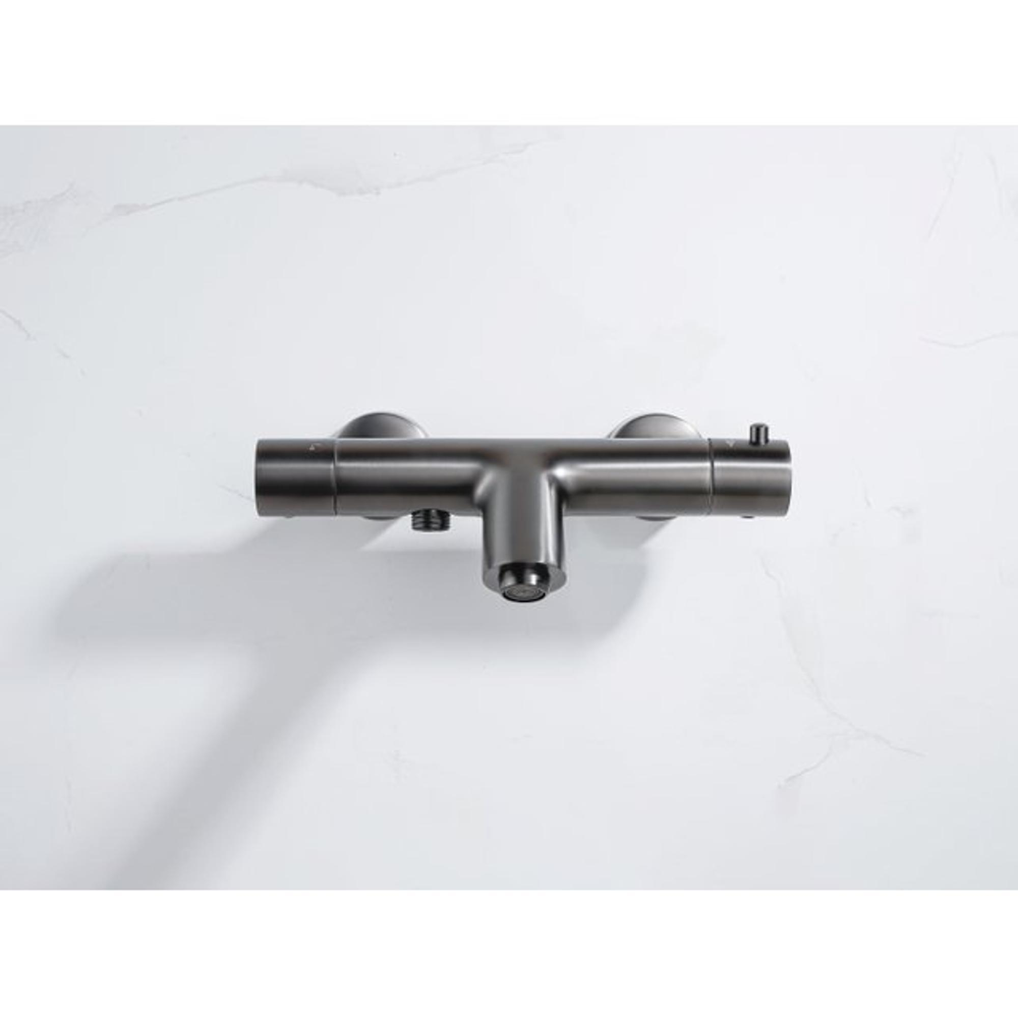 Fortifura Calvi Thermostatische badkraan met ronde handdouche, handdouchehouder en metalen doucheslang Geborsteld Gunmetal PVD