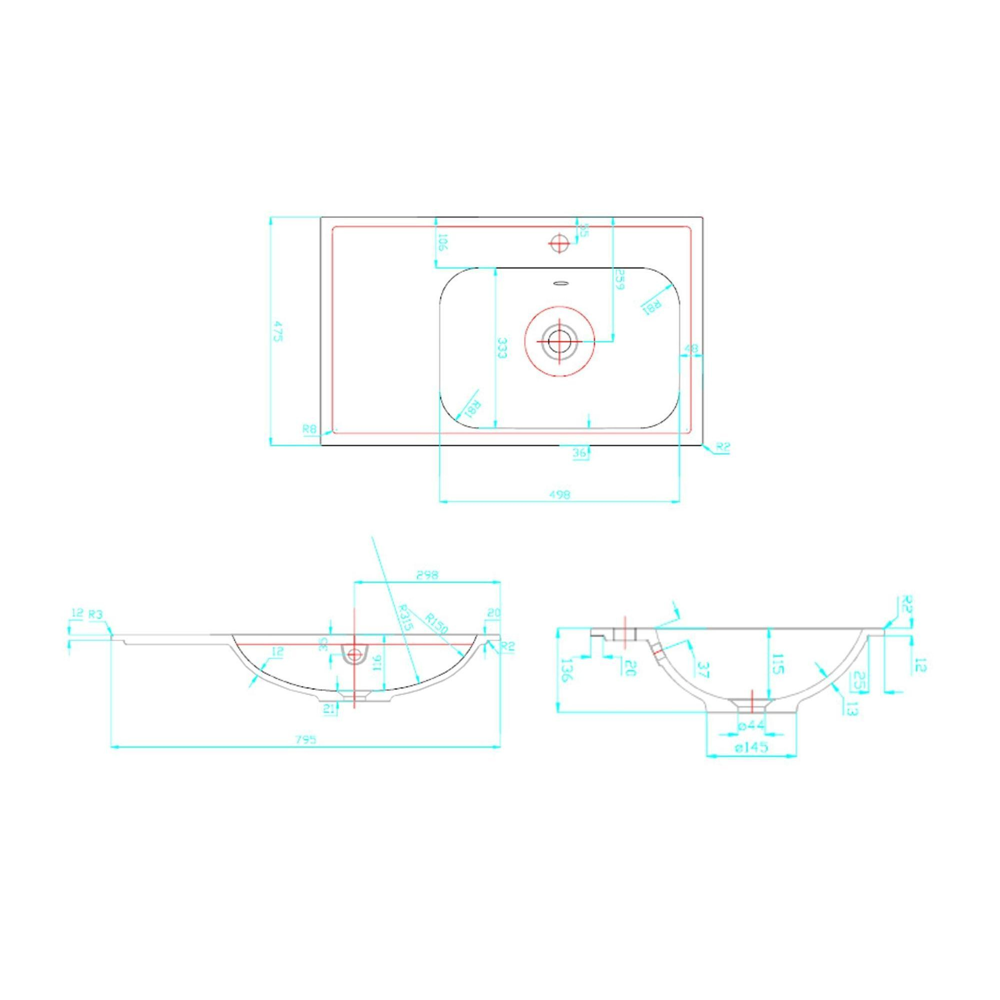 Best Design wastafel 80cm voor splash meubel met kraangat wit SW816110