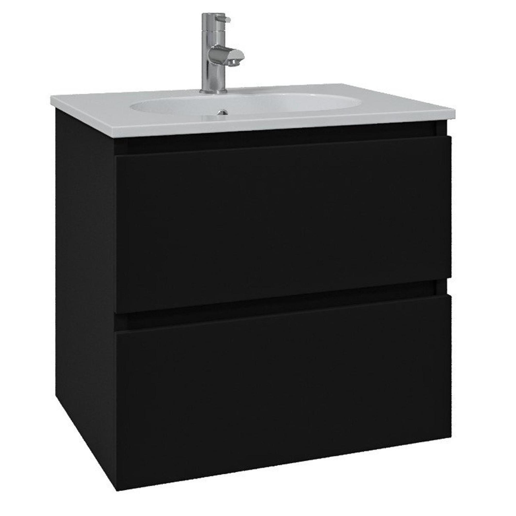 Adema Chaci Badkamermeubelset - 60x46x57cm - 1 ovale keramische wasbak wit - 1 kraangat - 2 lades - ronde spiegel met verlichting - mat zwart