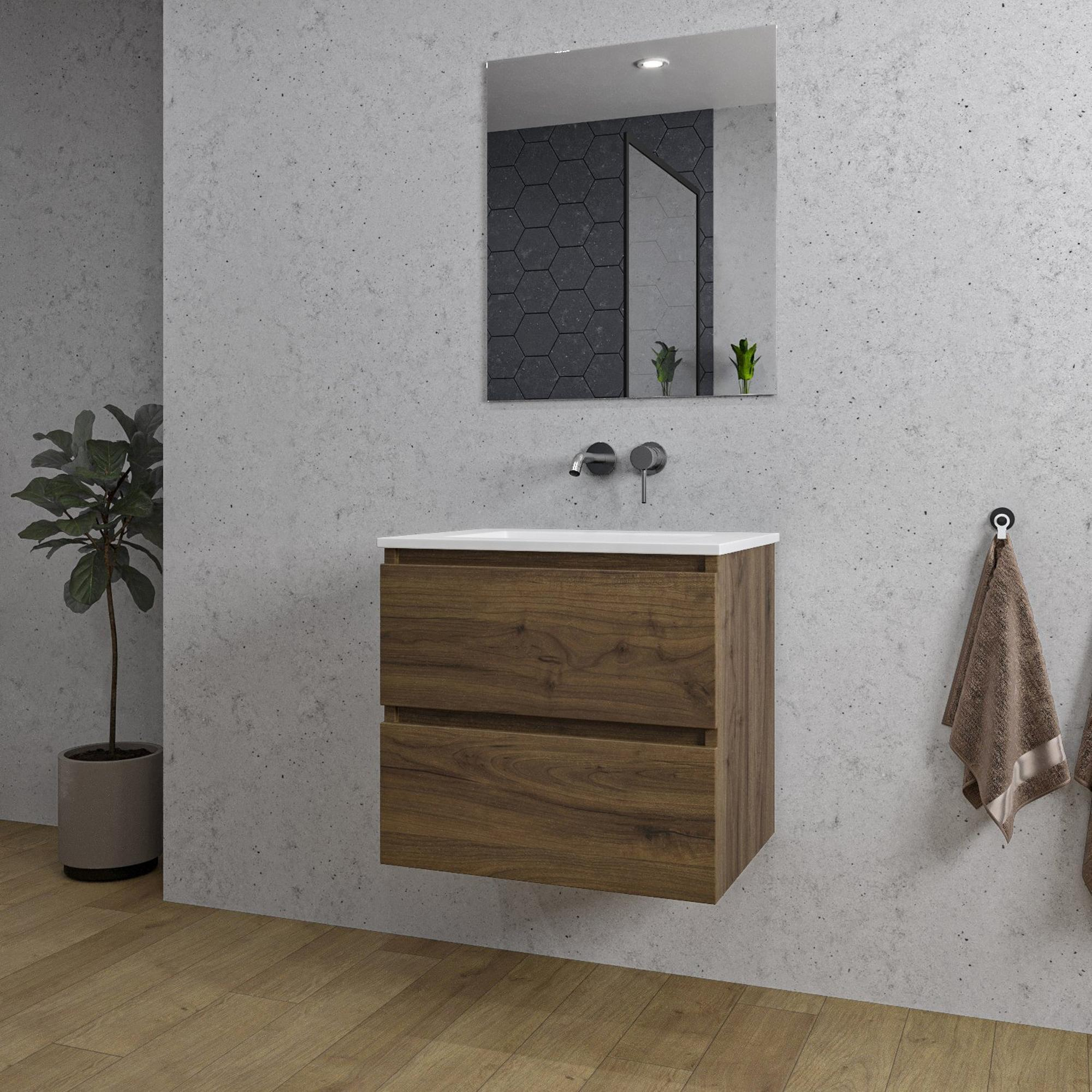 Adema Chaci Badkamermeubelset - 60x46x57cm - 1 keramische wasbak wit - zonder kraangaten - 2 lades - rechthoekige spiegel - noten (hout)