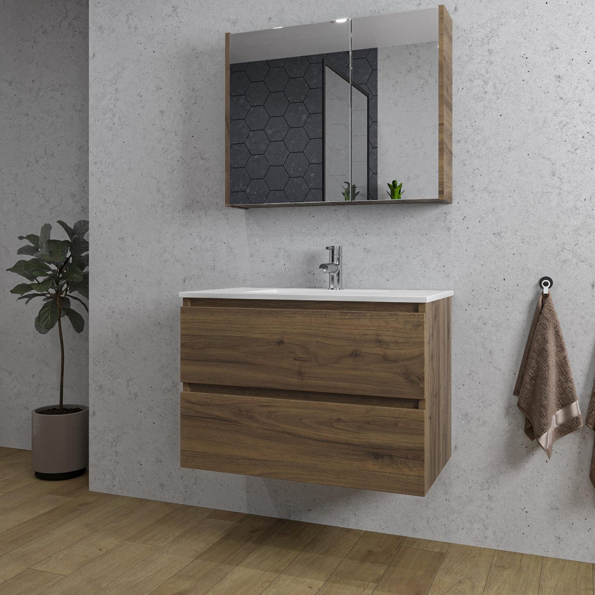 Adema Chaci Badkamermeubelset - 80x46x55cm - 1 keramische wasbak wit - 1 kraangat - 2 lades - Spiegelkast - noten (hout)