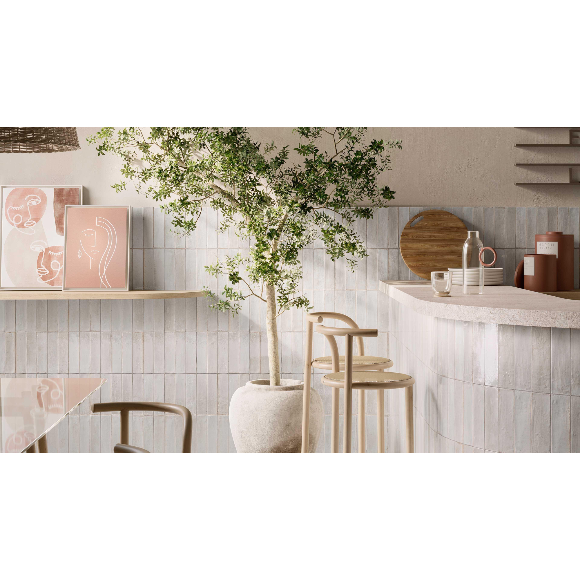 Ragno Look Wandtegel - 6x24cm - 10mm - porcellanato - wit glans