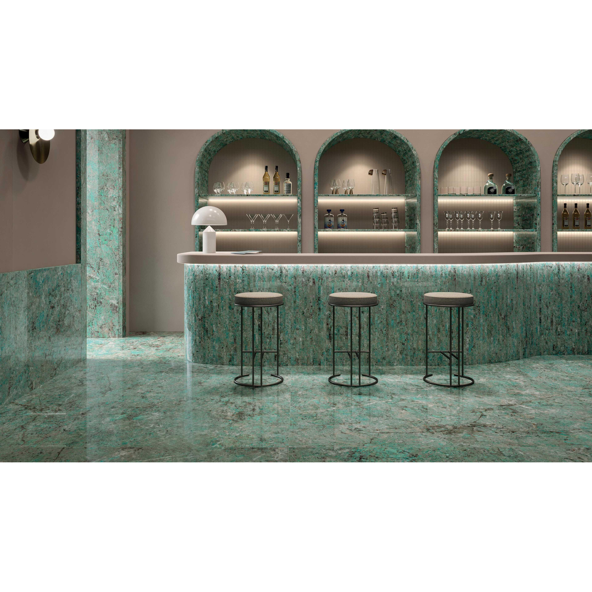 Deze tegel ademt luxe en verfijning uit, met zijn prachtige marmeren design en gerectificeerde randen. De subtiele glans en de diepe kleuren van de Amazzonite Mat afwerking geven elke ruimte een exclusieve uitstraling. Laat je omringen door een sfeer van elegantie en klasse met deze tegel als pronkstuk van je interieur.