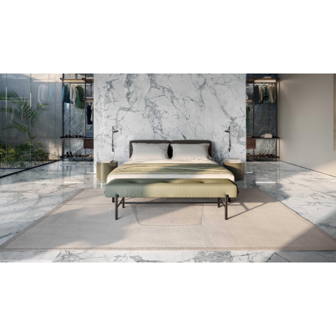 Ervaar de weelde en grandeur van deze vloer- en wandtegel die een sfeer van luxe en exclusiviteit uitstraalt. De verfijnde marmeren uitstraling van deze tegel voegt een vleugje elegantie toe aan elke ruimte, terwijl de glanzende afwerking een subtiel vleugje glamour toevoegt aan je interieur.