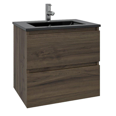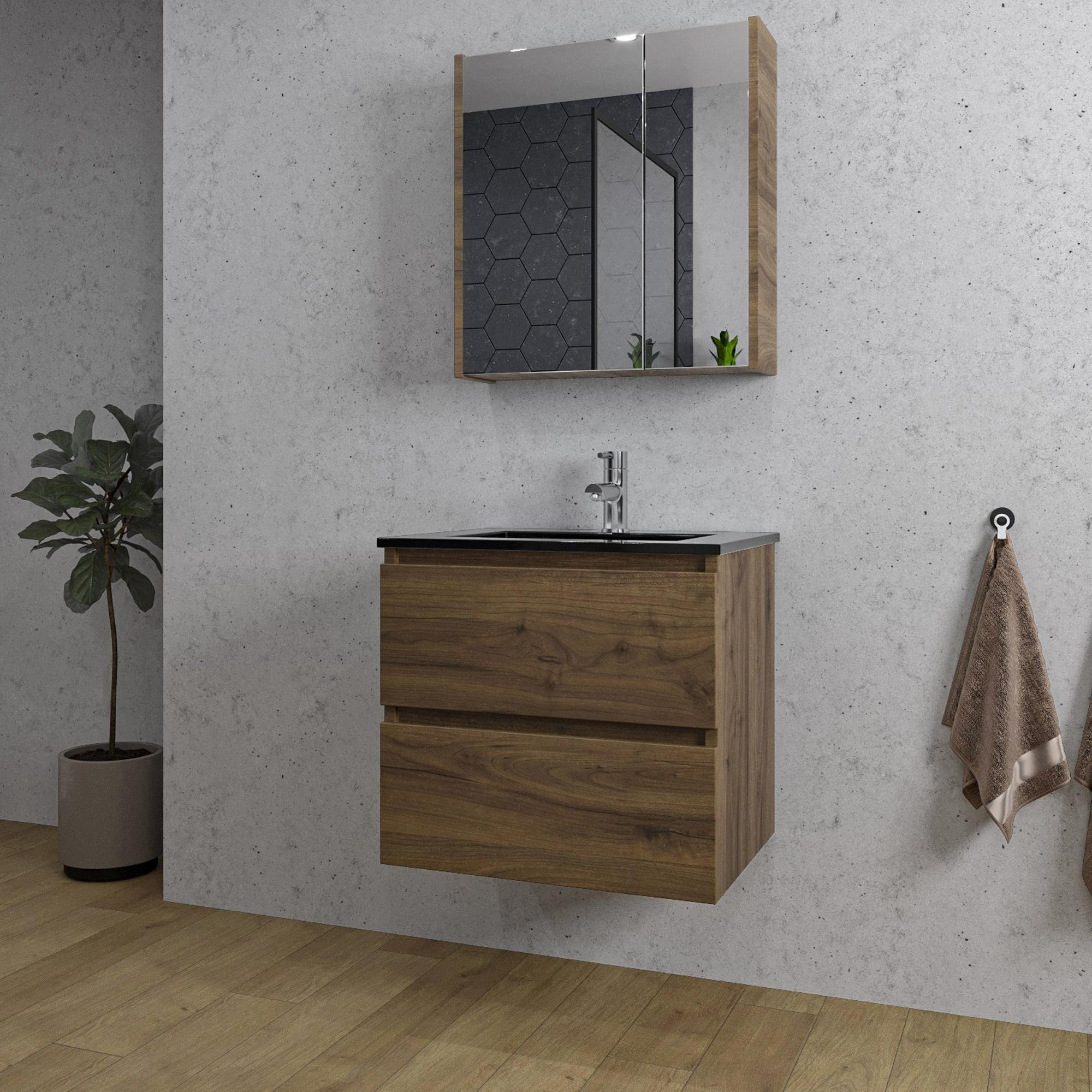 Adema Chaci Badkamermeubelset - 60x46x57cm - 1 keramische wasbak zwart - 1 kraangat - 2 lades - Spiegelkast - noten (hout)
