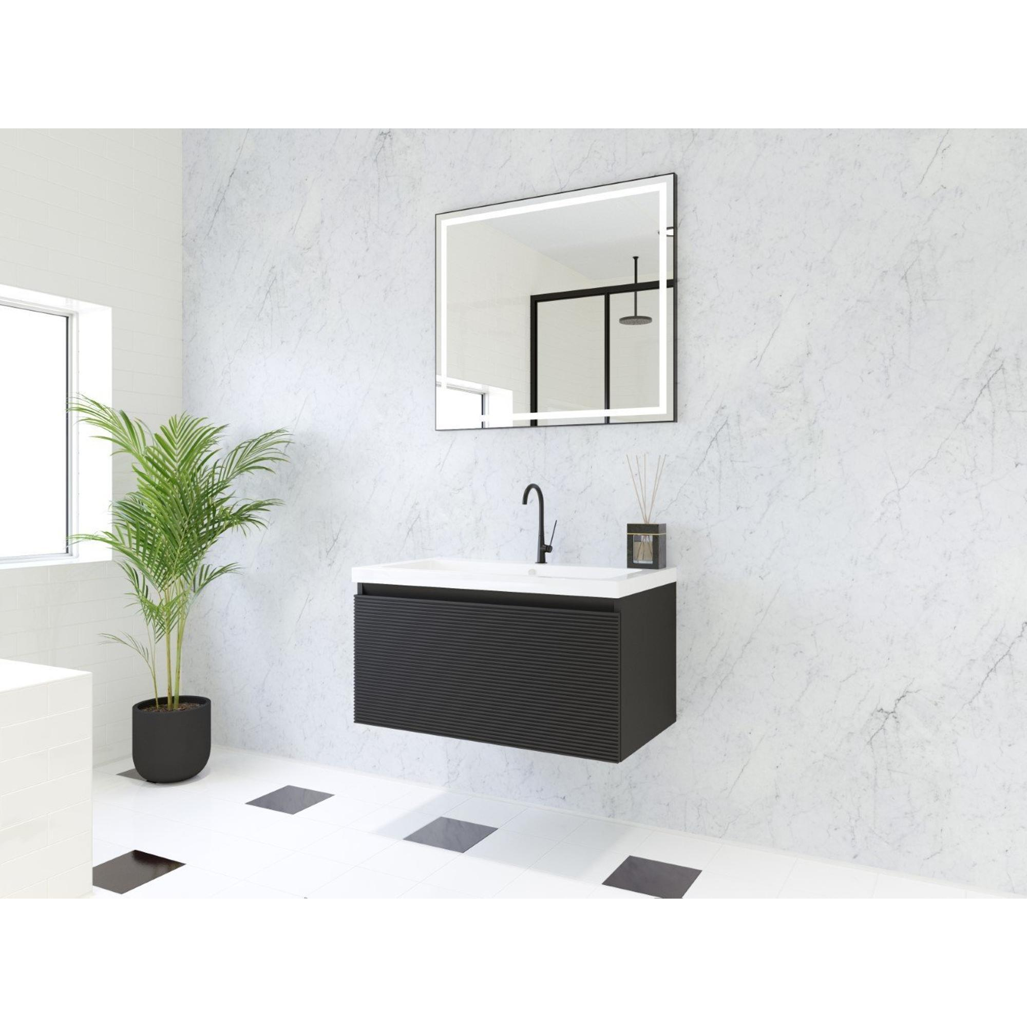 HR badmeubelen Matrix 3D badkamermeubelset 80cm 1 lade greeploos met greeplijst in kleur Zwart mat met wasbak djazz 1 kraangat wit