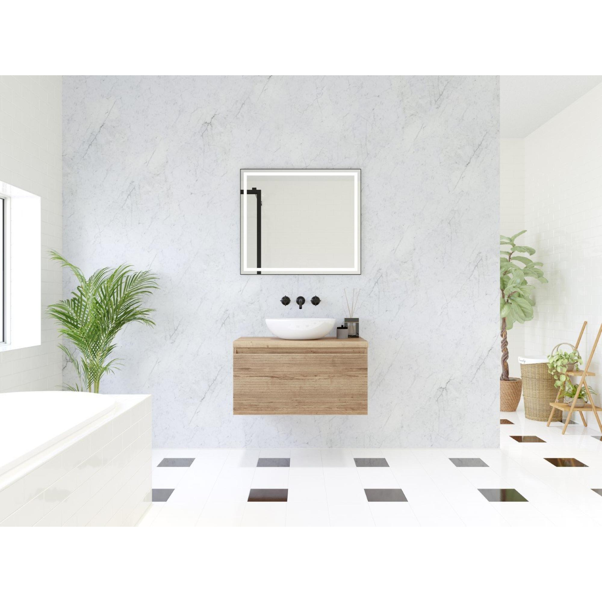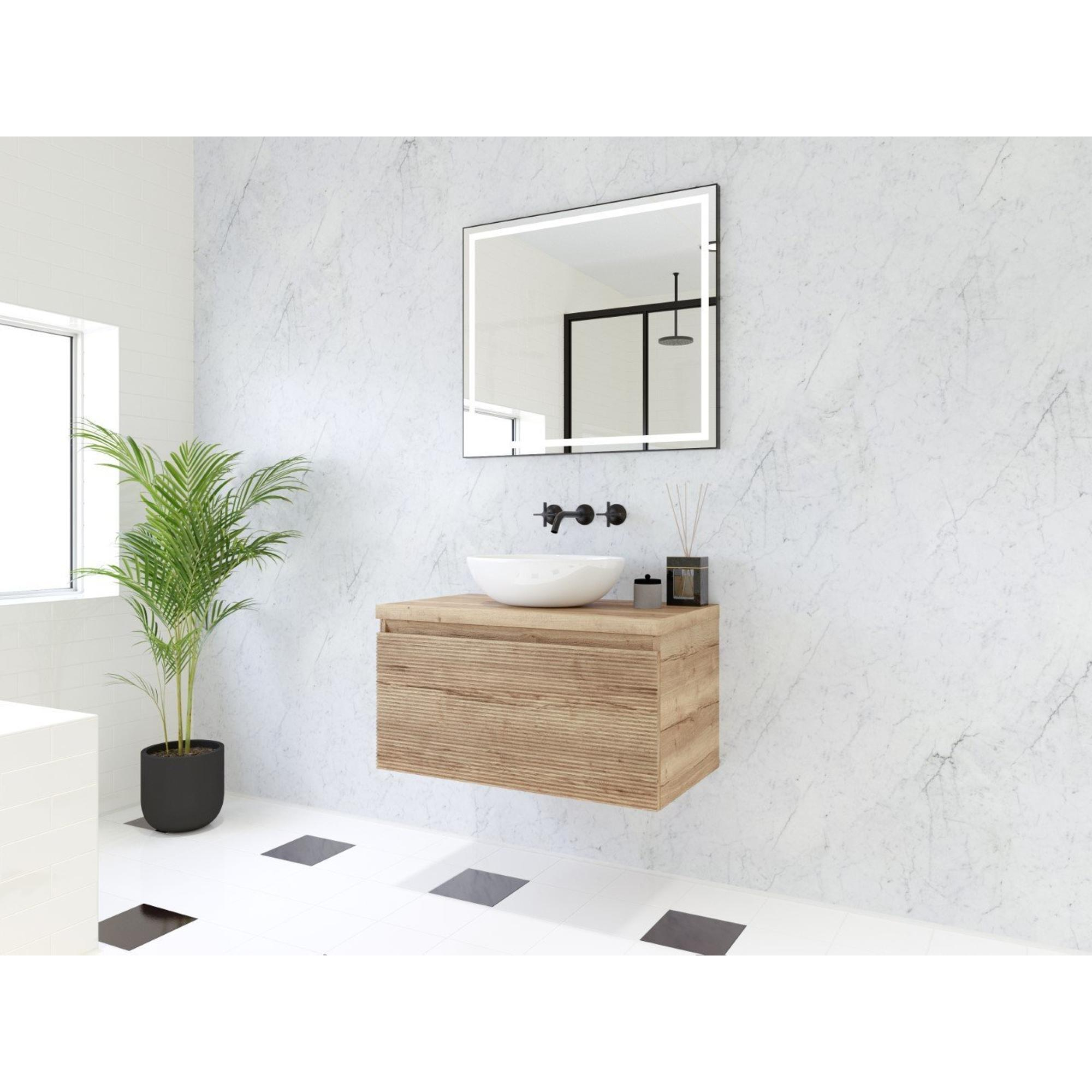 HR badmeubelen Matrix 3D badkamermeubelset 80cm 1 lade greeploos met greeplijst in kleur French oak met bovenblad french oak