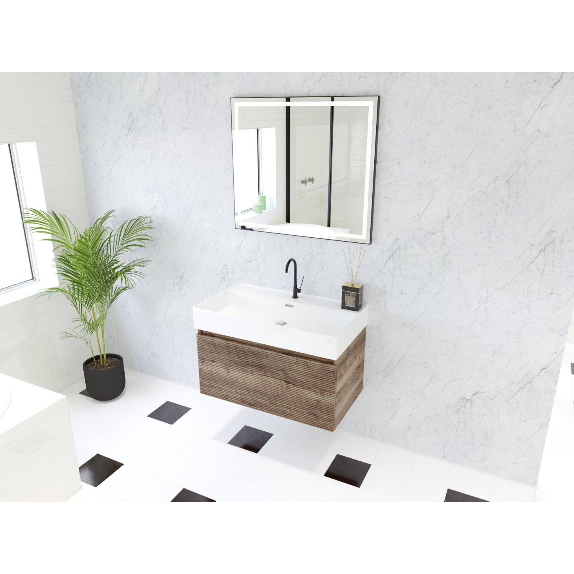 HR badmeubelen Matrix 3D badkamermeubelset 80cm 1 lade greeploos met greeplijst in kleur Charleston met wasbak kube 1 kraangat wit