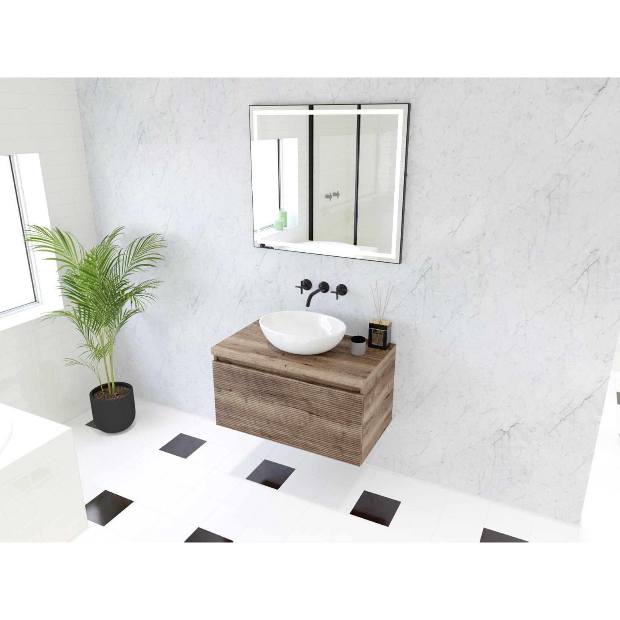 HR badmeubelen Matrix 3D badkamermeubelset 80cm 1 lade greeploos met greeplijst in kleur Charleston met bovenblad charleston