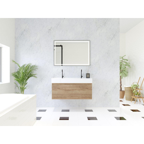 HR badmeubelen Matrix 3D badkamermeubelset 100cm 1 lade greeploos met greeplijst in kleur French oak met wasbak kube 2 kraangaten wit