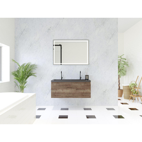 HR badmeubelen Matrix 3D badkamermeubelset 100cm 1 lade greeploos met greeplijst in kleur Charleston met wasbak djazz 2 kraangaten zwart mat