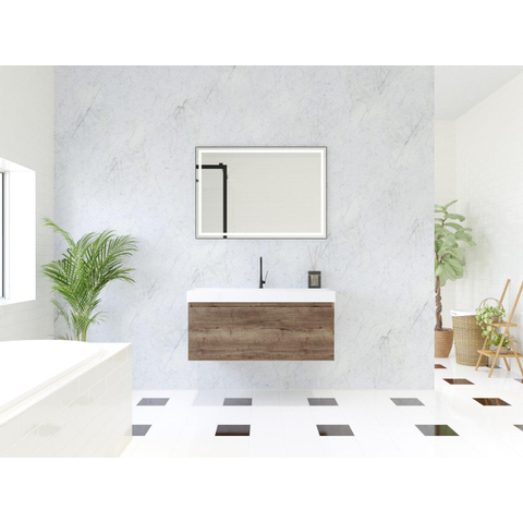 HR badmeubelen Matrix 3D badkamermeubelset 100cm 1 lade greeploos met greeplijst in kleur Charleston met wasbak just 1 kraangat wit
