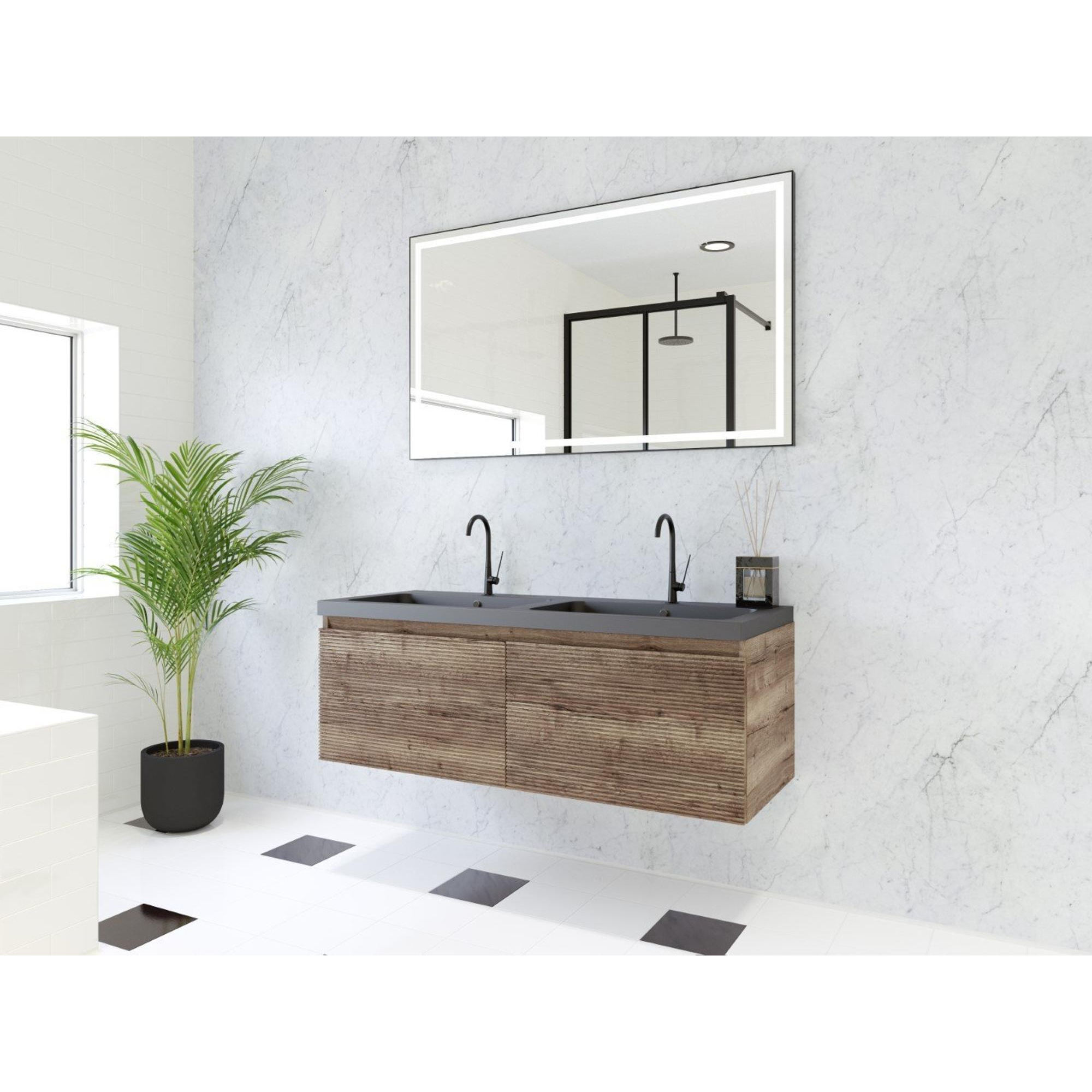 HR badmeubelen Matrix 3D badkamermeubelset 120cm 2 laden greeploos met greeplijst in kleur Charleston met wasbak djazz dubbel 2 kraangaten zwart mat