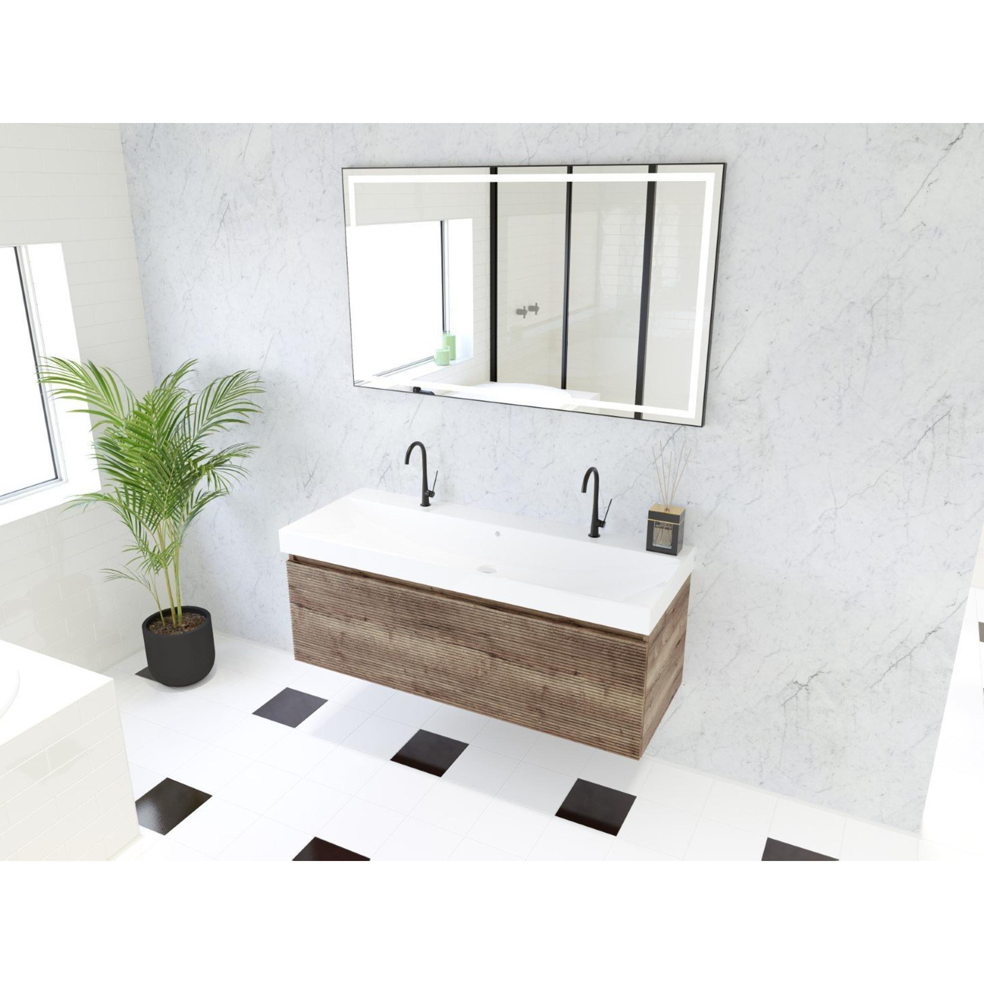 HR badmeubelen Matrix 3D badkamermeubelset 120cm 1 lade greeploos met greeplijst in kleur Charleston met wasbak just 2 kraangaten wit