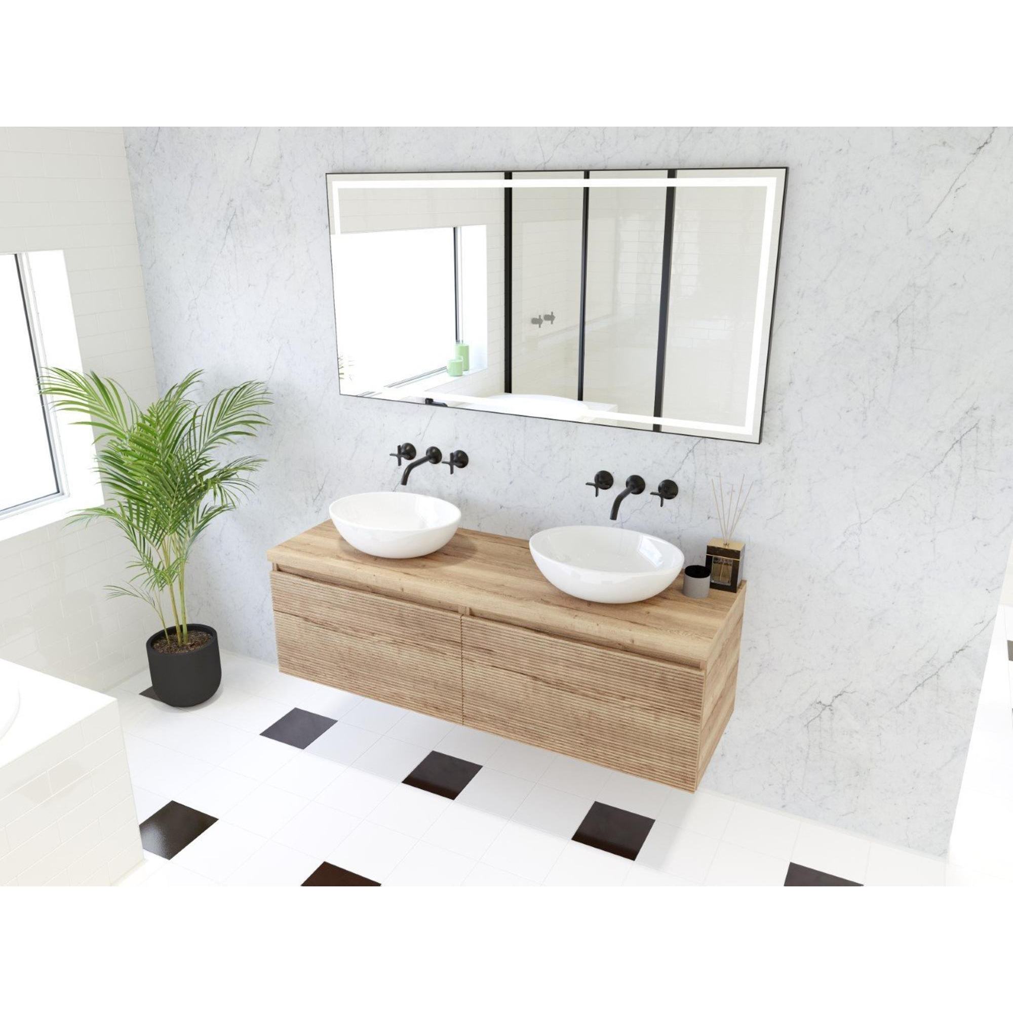HR badmeubelen Matrix 3D badkamermeubelset 140cm 2 laden greeploos met greeplijst in kleur French oak met bovenblad french oak