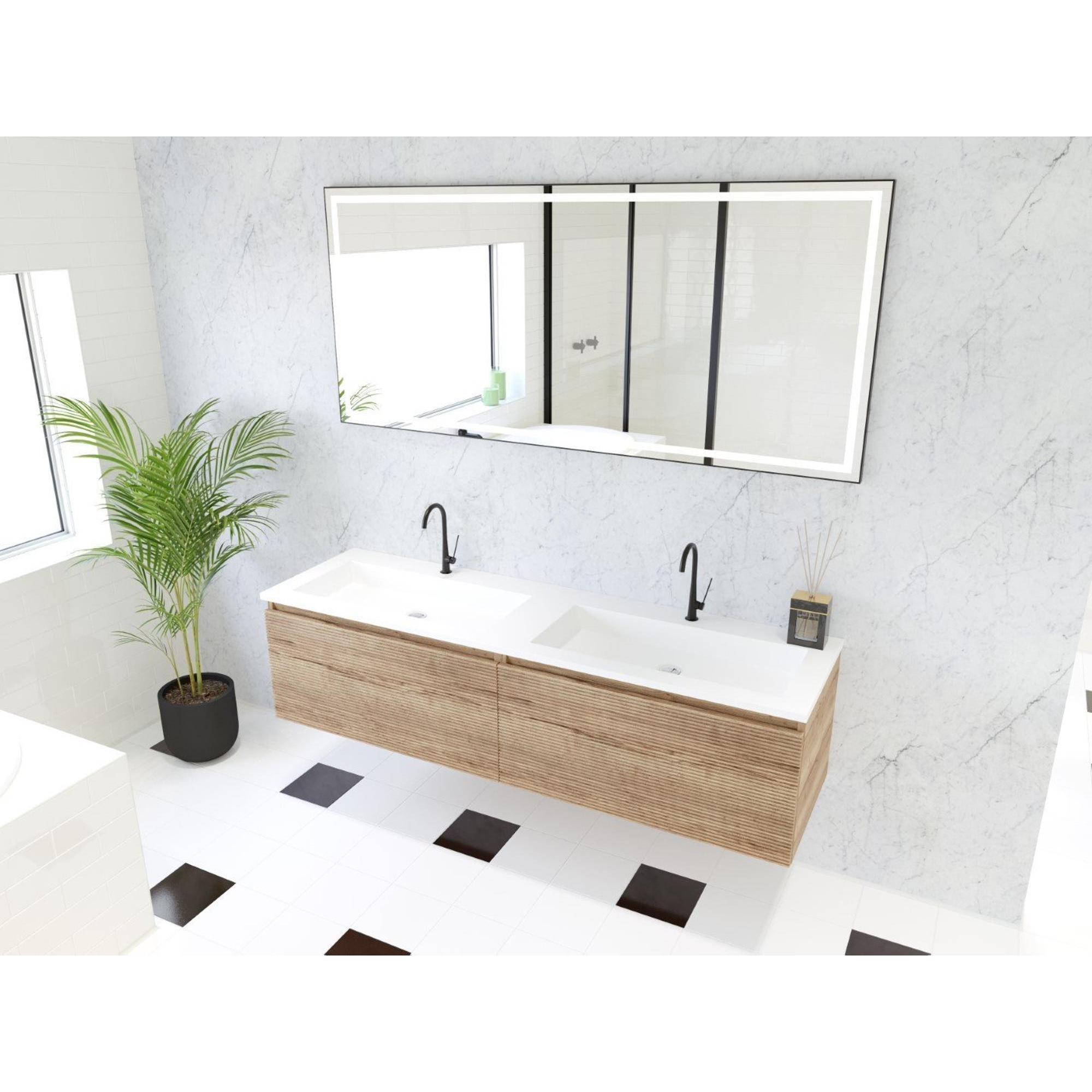 HR badmeubelen Matrix 3D badkamermeubelset 160cm 2 laden greeploos met greeplijst in kleur French oak met wasbak thin 2 kraangaten wit mat