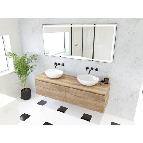 HR badmeubelen Matrix 3D badkamermeubelset 160cm 2 laden greeploos met greeplijst in kleur French oak met bovenblad french oak
