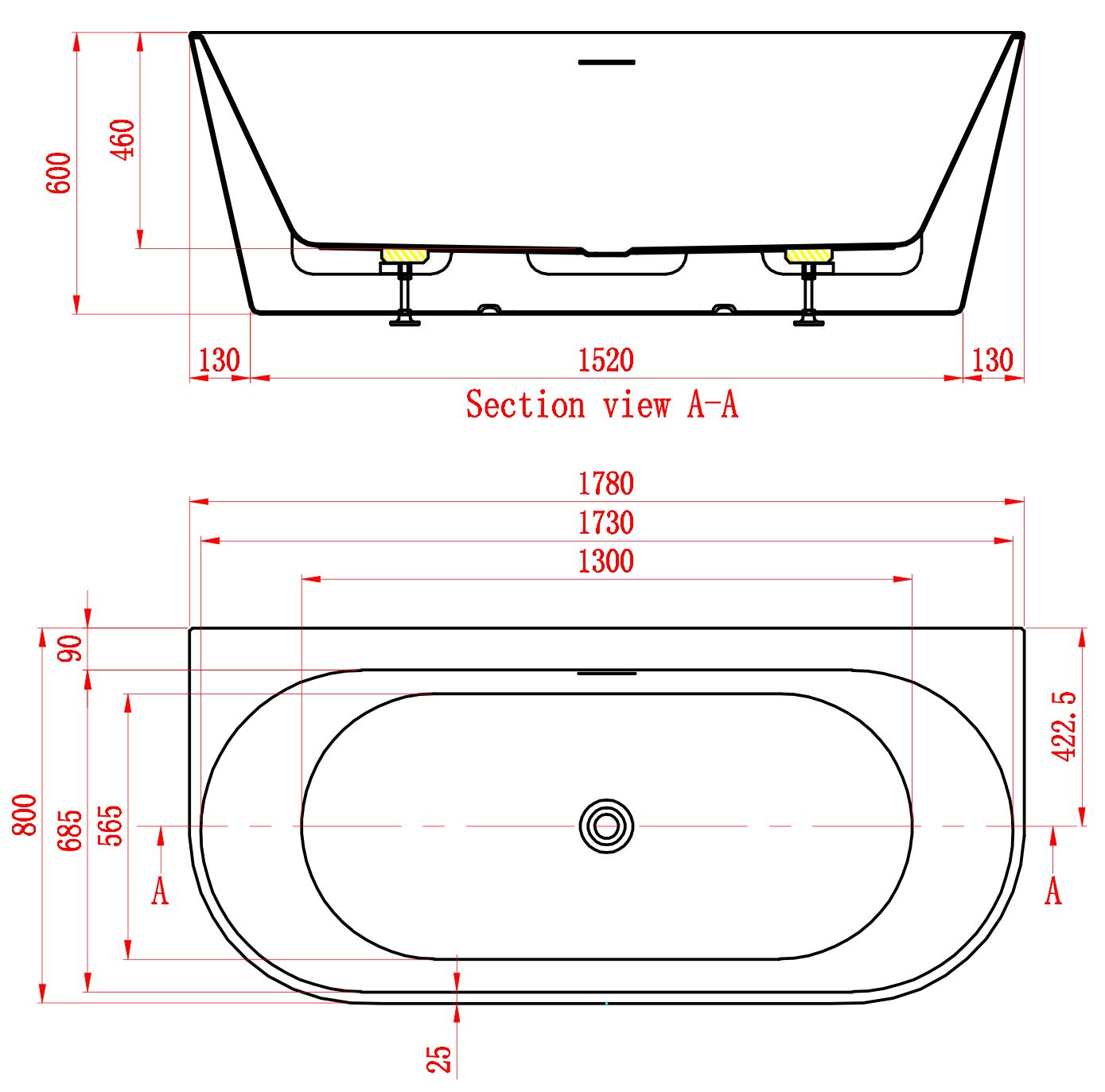 - Half vrijstaand ligbad met back-to-wall ontwerp