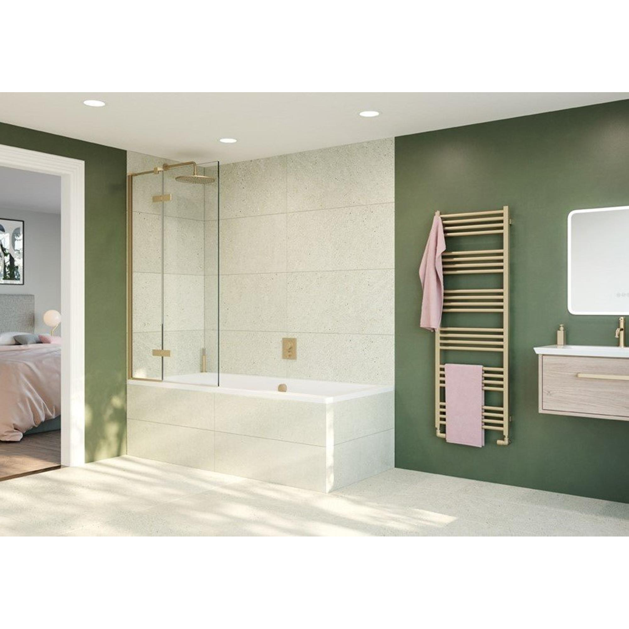 Crosswater Optix 10 Badwand - 90x150cm - 2-delig - links - 180graden - geborsteld messing