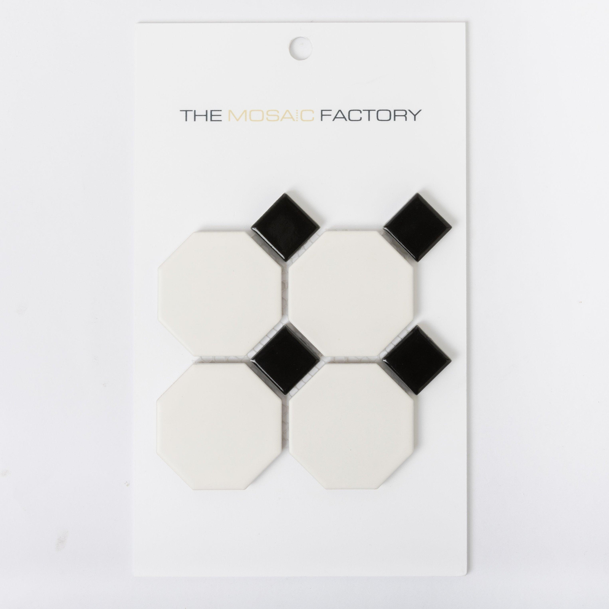 SAMPLE The Mosaic Factory Paris mozaïektegel 5,6x5,6x0,6cm en 2.3x2.3x0.6cm wandtegel voor binnen en buiten Keramiek wit met zwart