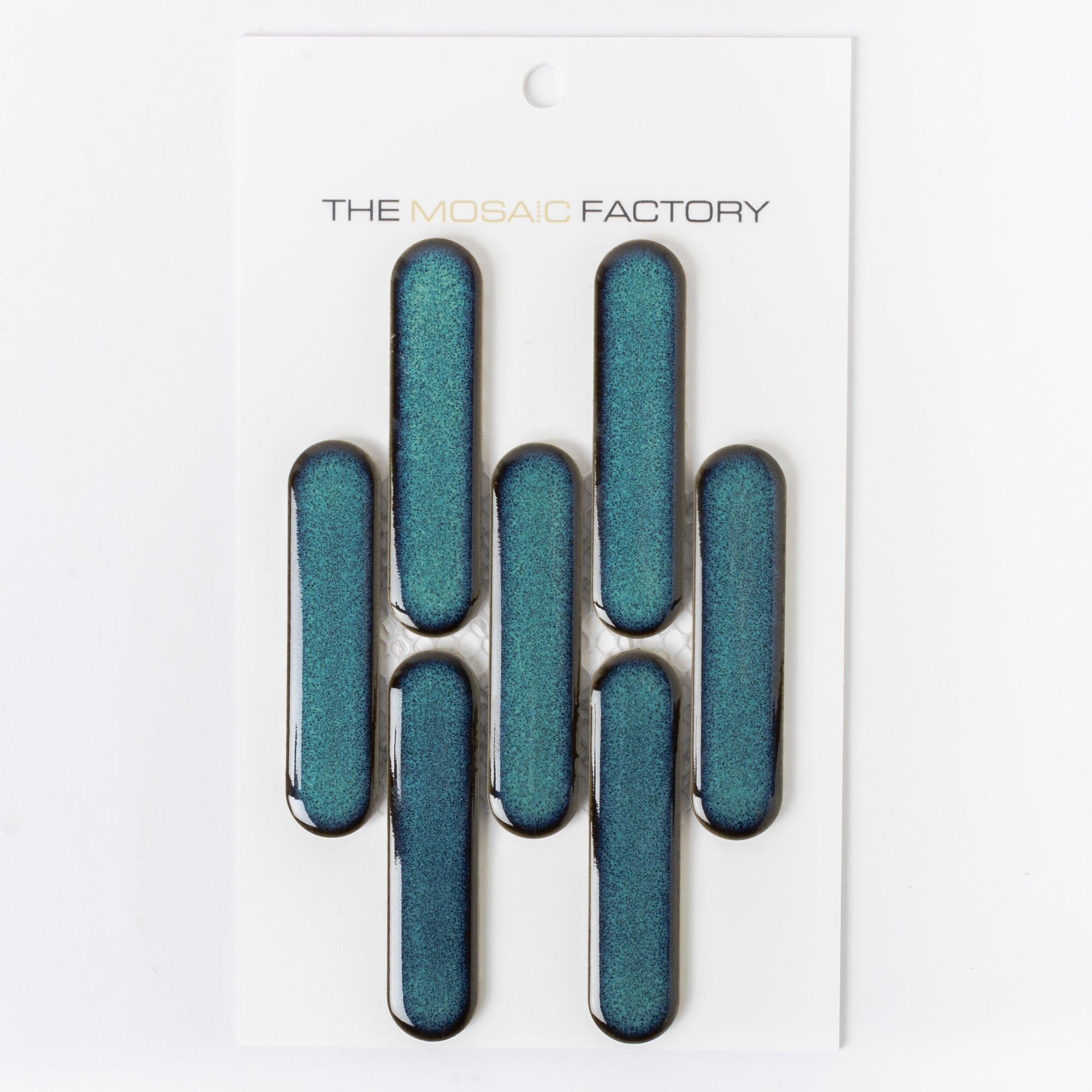 SAMPLE The Mosaic Factory Sevilla mozaïektegel 2.3x9.8x0.6cm voor wand kitkat oval finger Keramiek Glans Azuur-Blauw-Spikkel