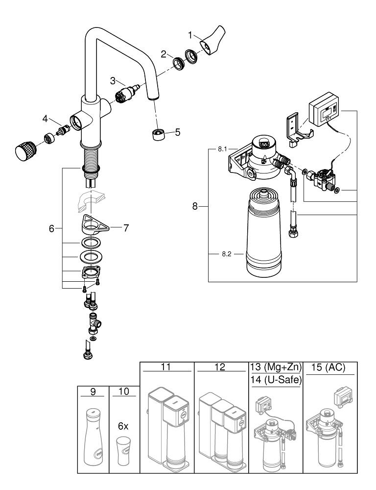 GROHE Blue pure eurosmart U-uitloop S-Size filter starterkit chroom