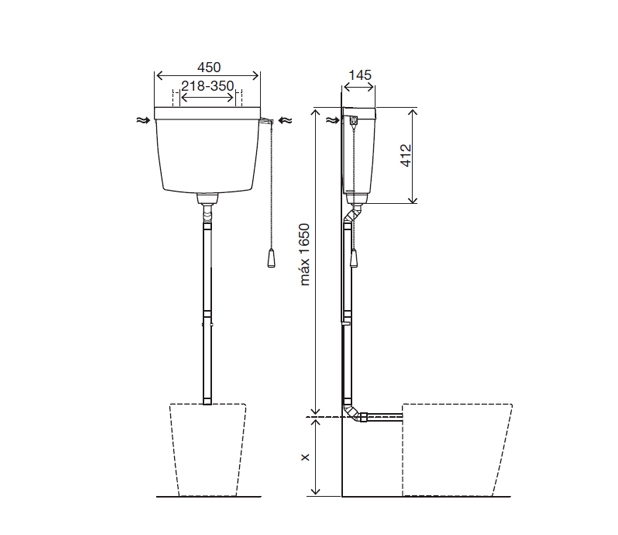 | Positie reservoir | hooghangend | |