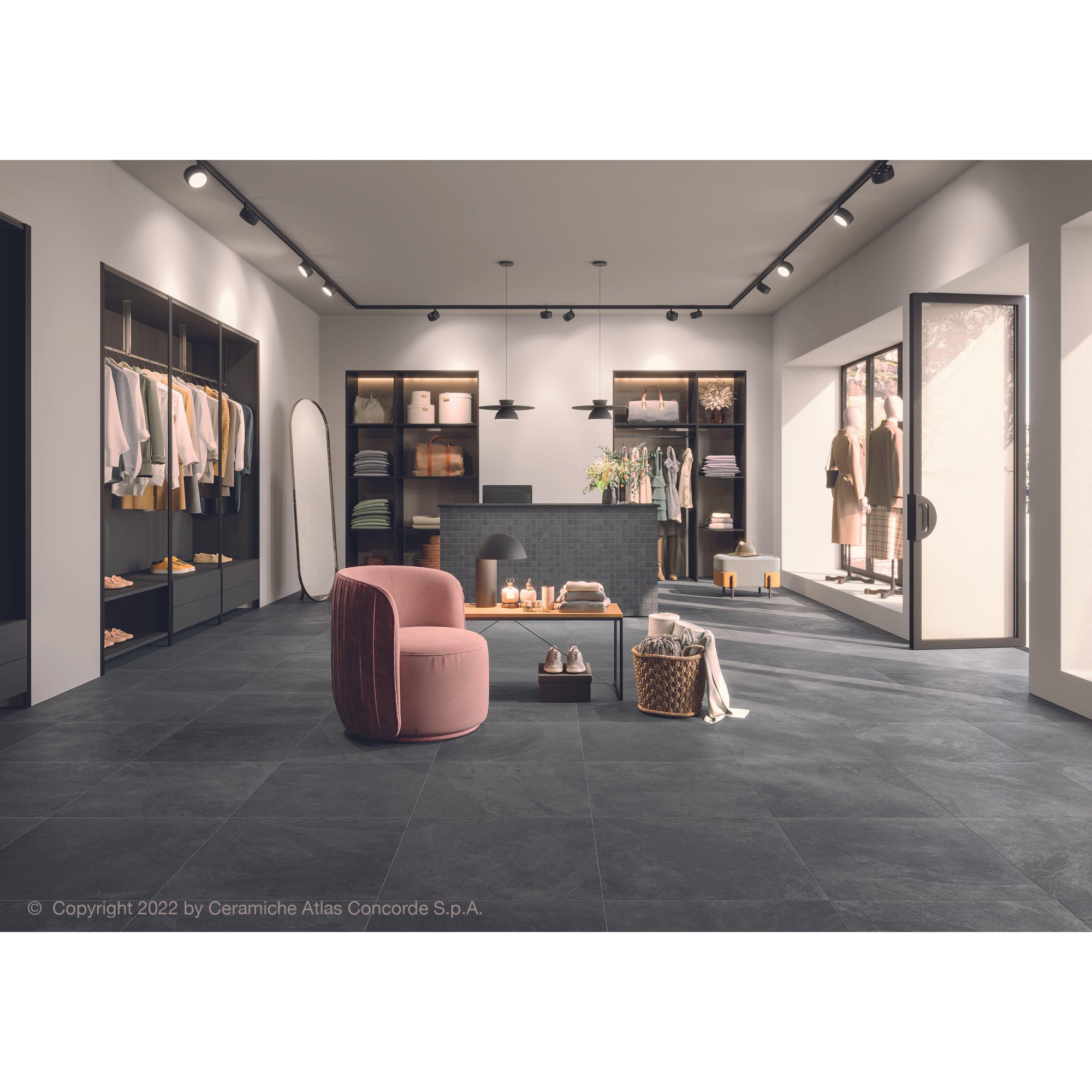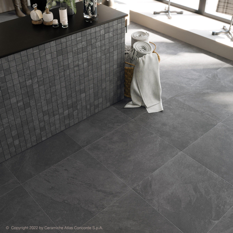De Atlas Concorde Solution tegel in zwart is een stijlvolle keuze voor elke ruimte. De natuursteen look geeft een gevoel van luxe en elegantie, terwijl de gerectificeerde afwerking zorgt voor strakke en naadloze voegen. Deze tegel is perfect voor het creëren van een moderne en verfijnde uitstraling in je interieur.