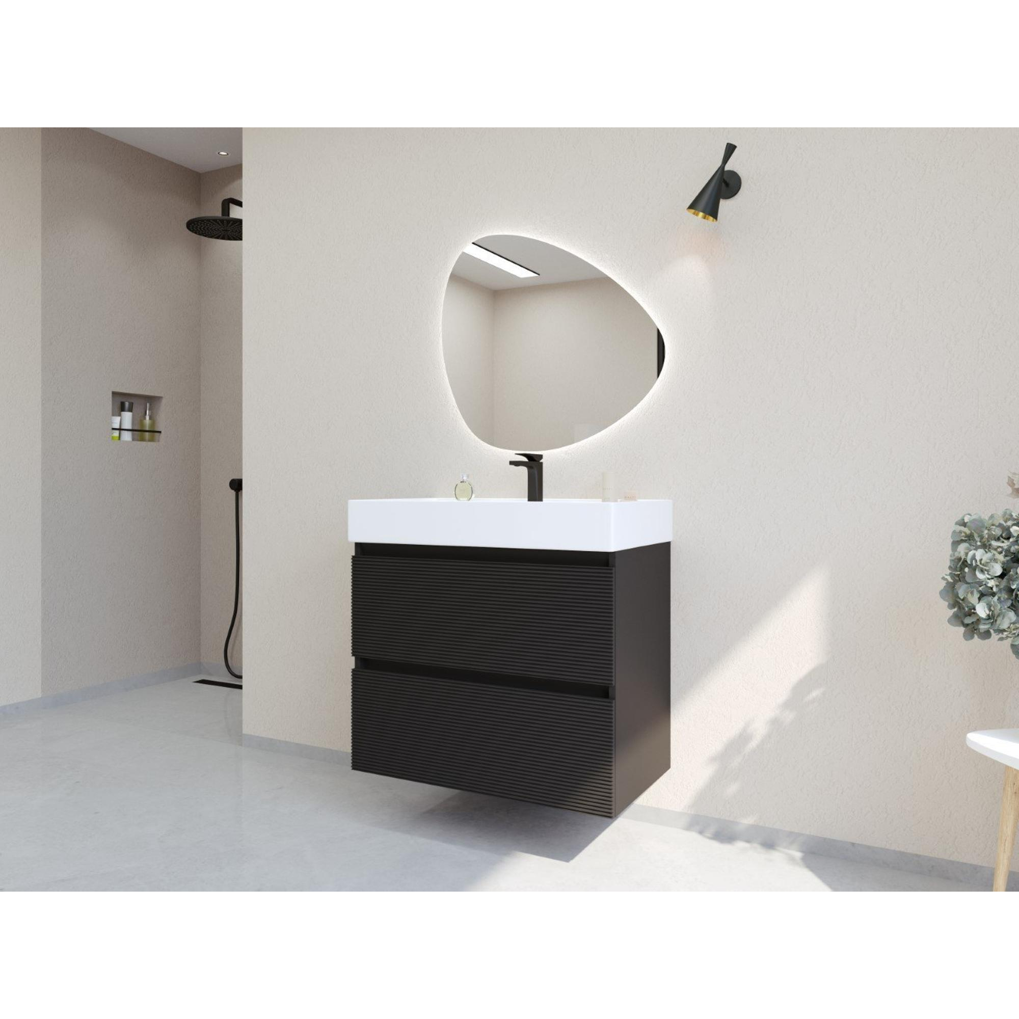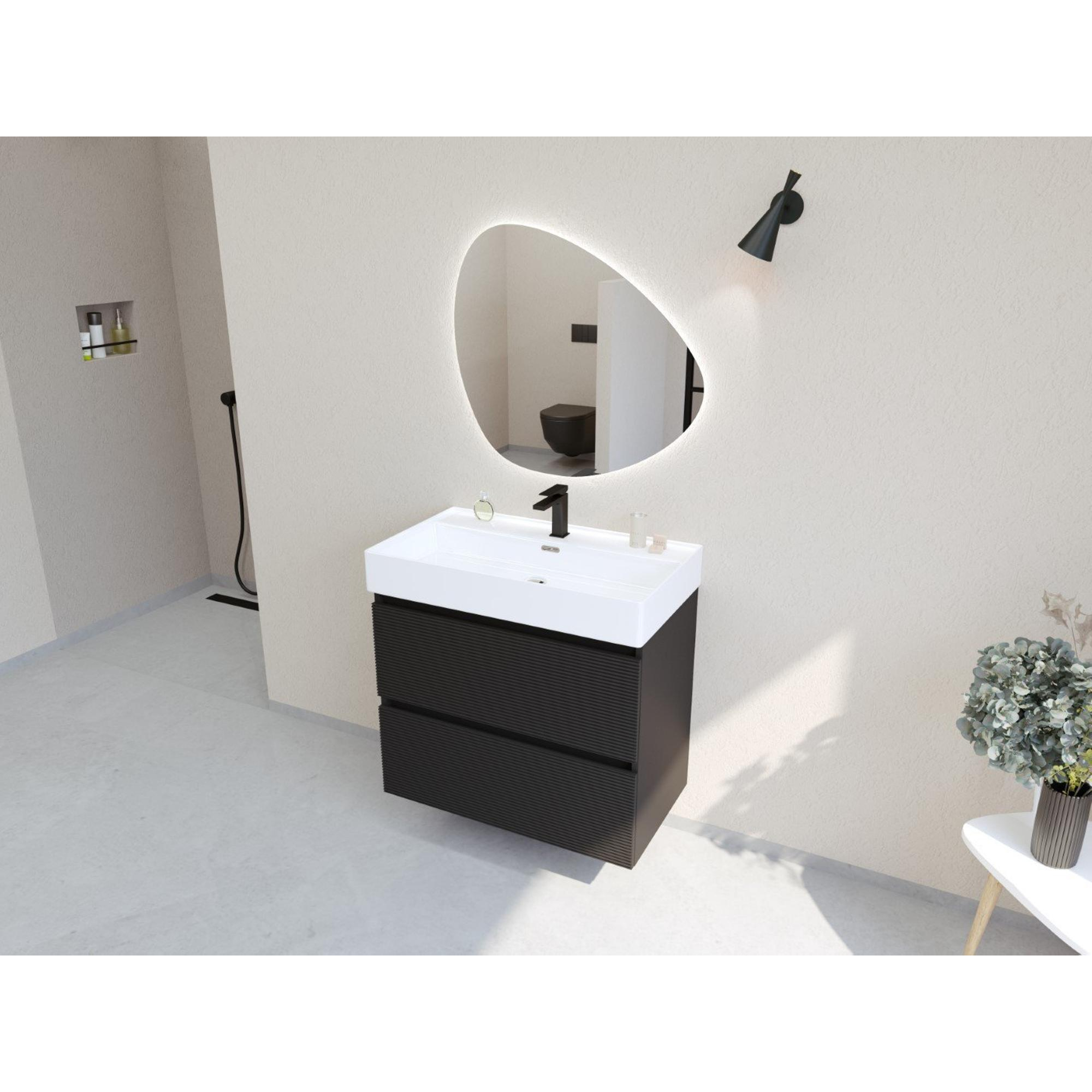 HR badmeubelen Infinity XXL 3D Badkamermeubelset - 80 cm - 1 keramische wasbak kube wit - 1 kraangat - 2 lades - mat zwart