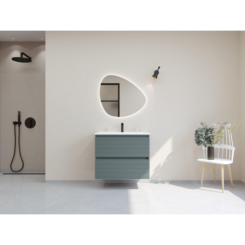 HR badmeubelen Infinity XXL 3D Badkamermeubelset - 80 cm - 1 keramische wasbak gala wit - 1 kraangat - 2 lades - mat petrol