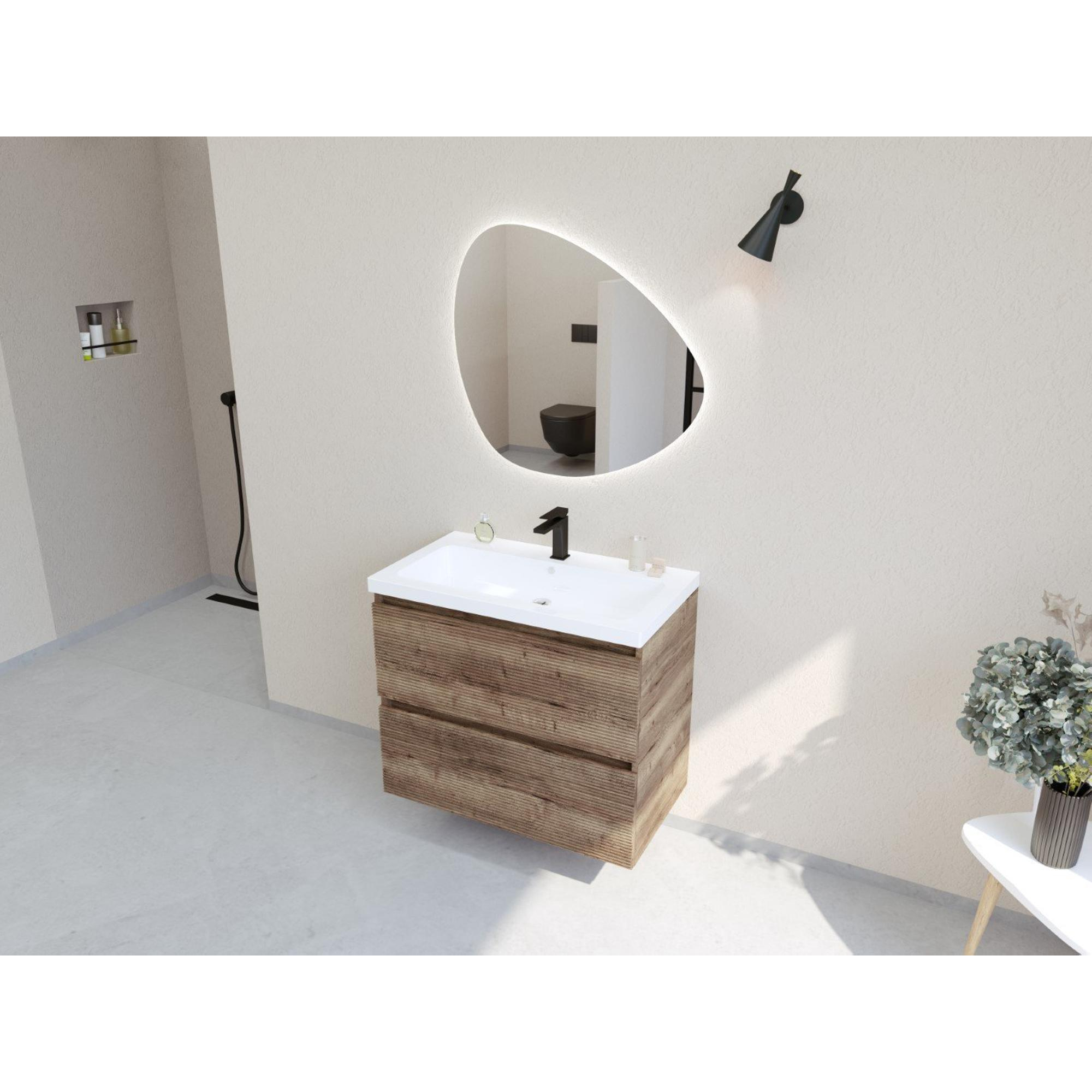 HR badmeubelen Infinity XXL 3D Badkamermeubelset - 80 cm - 1 keramische wasbak djazz wit - 1 kraangat - 2 lades - charleston